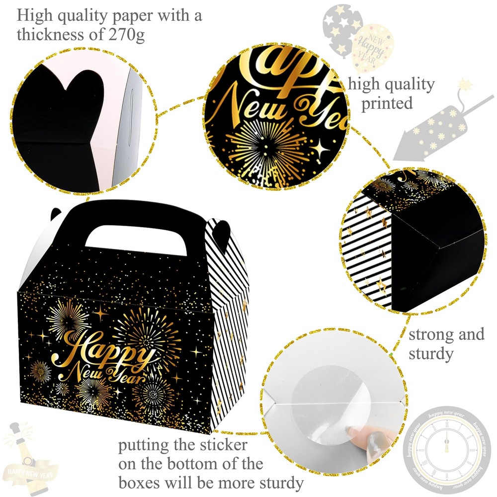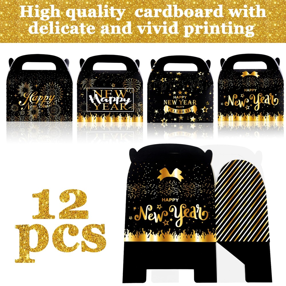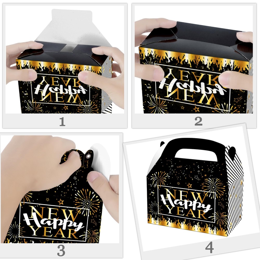 Welcome to our stores! Discover Top Quality Products! We assure your satisfaction. New Years Party Treat Boxes 2025 Happy New Year Goodie Boxes 12PCS New Years Party Decorations Black and Gold Candy Boxes for New Years Eve Party Supplies Image Gallery Product Information Pack of 12pcs new year party treat boxes, the size of each box measures about 6.3×3.7×3.7 inches. Proper size for packing the candies, snacks, chocolates, cupcakes, toys, etc. Great for your new years party needs. Created specifically for New Year's themed parties, such as 2025 New Years eve party, New Years birthday party, baby shower, family gathering, company party and more. A surprise and full of blessings. Product Highlights Happy 2025 New Year Boxes:Pack of 12pcs new year party treat boxes, the size of each box measures about 6.3×3.7×3.7 inches. Proper size for packing the candies, snacks, chocolates, cupcakes, toys, etc. Great for your new years party needs Eye-catching black and gold design:2025 Happy New year goodie boxes are two styles in total, and each box has a different New Year's celebration printed on each side. The classic black and gold design looks more flashy New Years eve party supplies:Created specifically for New Year's themed parties, such as 2025 New Years eve party, New Years birthday party, baby shower, family gathering, company party and more. A surprise and full of blessings High grade cardboard materials:This New Year's themed box is made of sturdy heavy paper cardboard and has enough strength to hold your desserts, fruits or toys. Printed clearly on each side of the box looks bright and vibrant Simple assembly steps:Our 2025 New Year gable boxes just need to assemble it according to the crease lines. You can also refer to the assembly step-by-step pictures on the detail page. Any problem we will provide the quality solution for you Thank you for your business! Contact Us ✉ For any inquiries, please reach out via the eBay messaging system. We aim to respond within 24 hours. Payment Methods 💳 We accept PayPal, credit cards, and other payment methods supported by eBay. Ensure your payment details are correct to avoid delays. Shipping Information Your item will be shipped to the address listed on your eBay account. Please confirm your address before completing the purchase. Shipping typically takes 3-7 business days. In case of delays, please allow an additional 2-3 business days due to postal service issues or technical problems. We use reliable shipping services like UPS, FedEx, and USPS. We ship only to the 48 contiguous states. Unfortunately, we cannot ship to Alaska, Hawaii, US territories, APO/FPO addresses, or PO Boxes. Local pickup is not available. If there are any issues with your delivery, please contact us promptly. Your Feedback 🌟 We value your feedback and strive to earn your trust. If you're not satisfied with your purchase, please contact us and we'll work to resolve the issue. Return Policy - We offer a 30-day return policy. - If the item is defective or you are not satisfied, contact us for a replacement or refund. - All returns must be sent to the address provided upon contacting us.