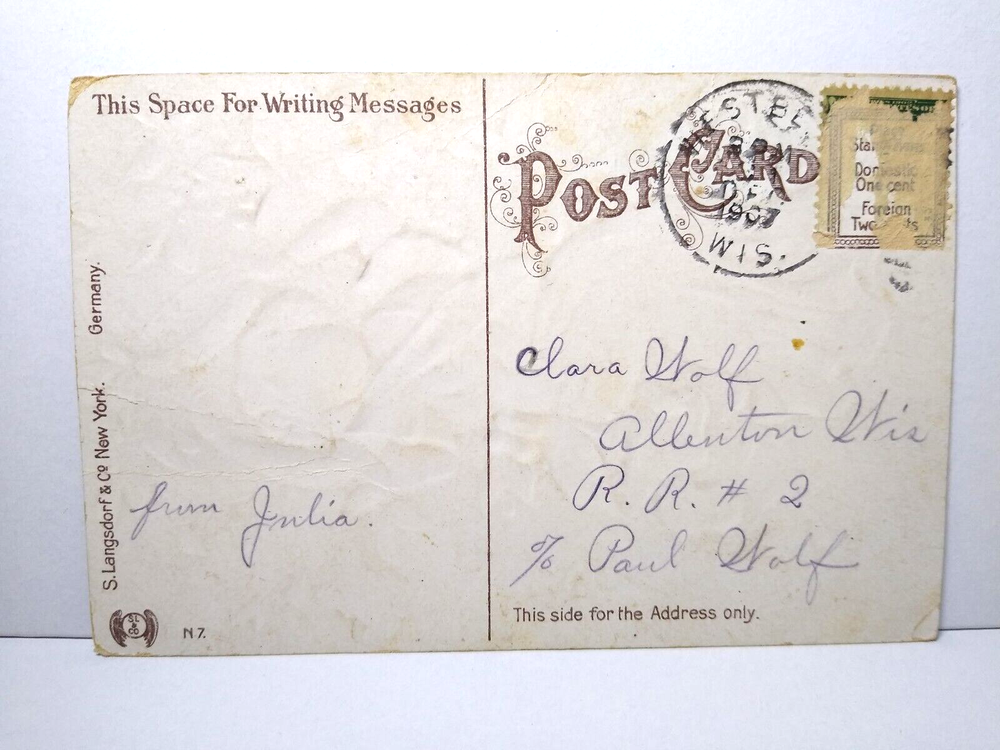 Posted with 1907 cancel. Antique original vintage embossed post card. Has creases, corner wear, and age wear. Stock #NY153. Additional postcards are in our store. All post cards are old originals and may or may not have writing on back. Bundle and save by using cart and making single payment. Any questions about this item please just ask.