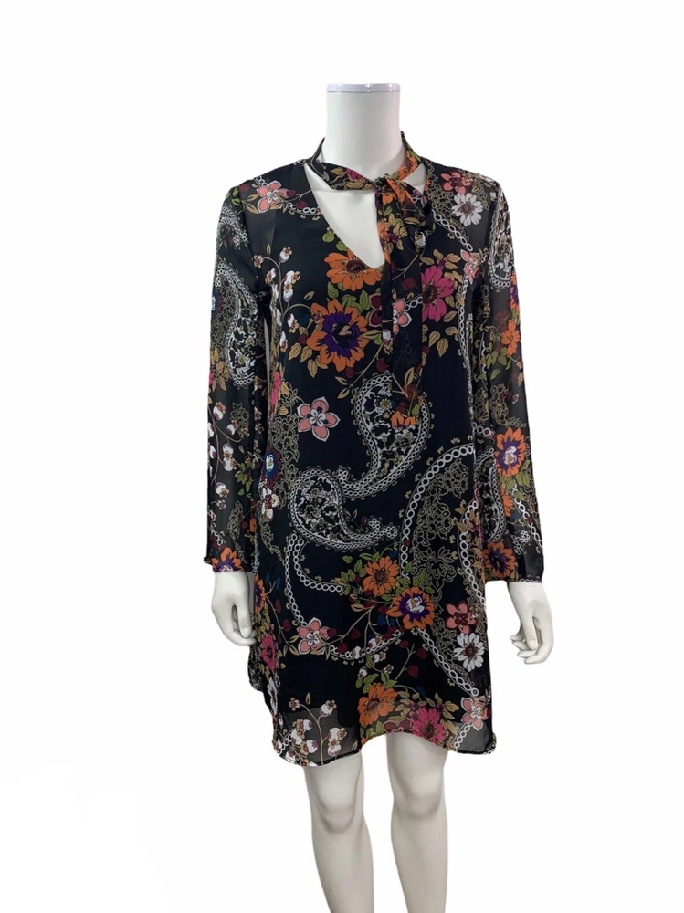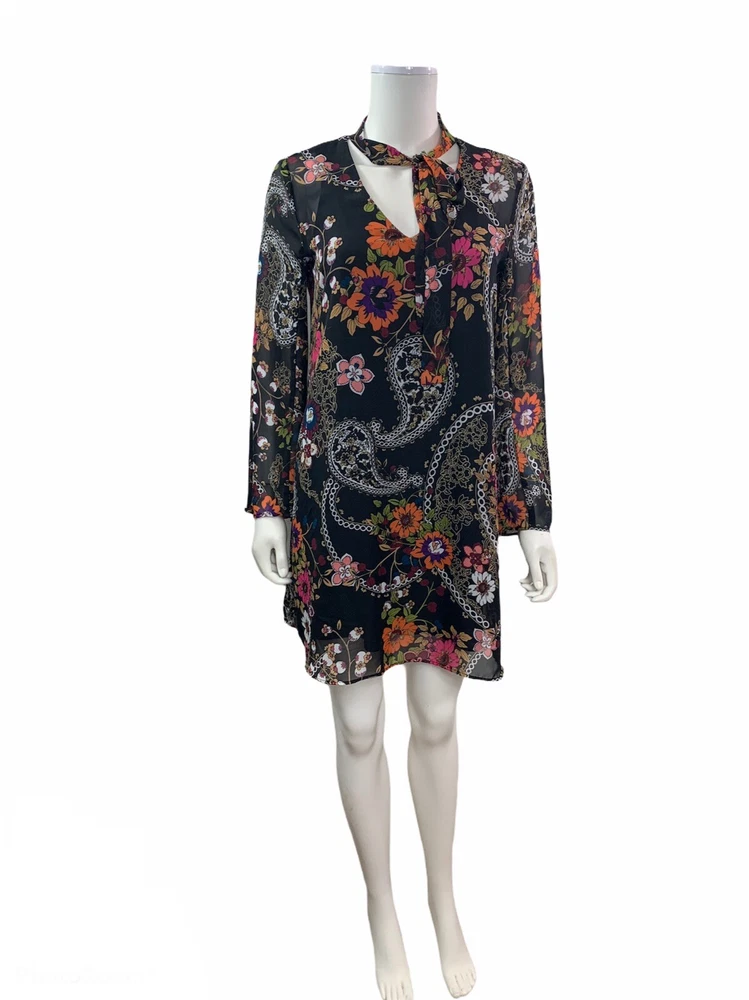 New York And Company Women’s Size 2 Long Sleeve Tie Neck Paisley Floral Dress. Armpit to armpit 18” Total length 35” Measurements taken laying flat Excellent condition no rips or stains Smoke free and pet free home