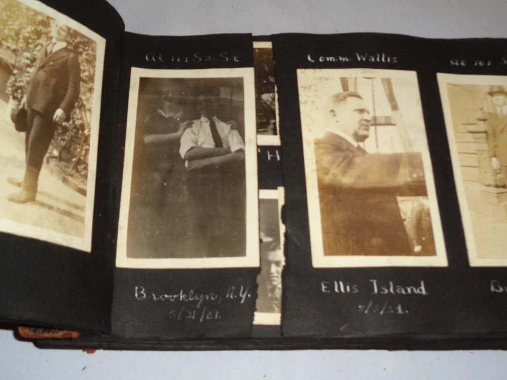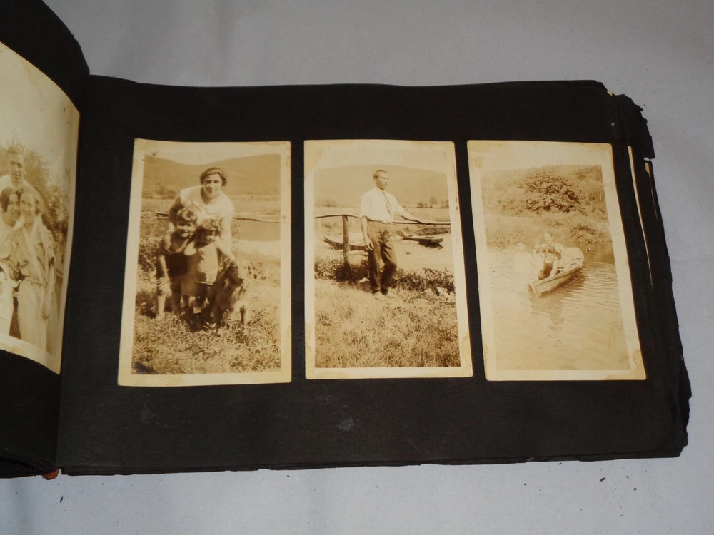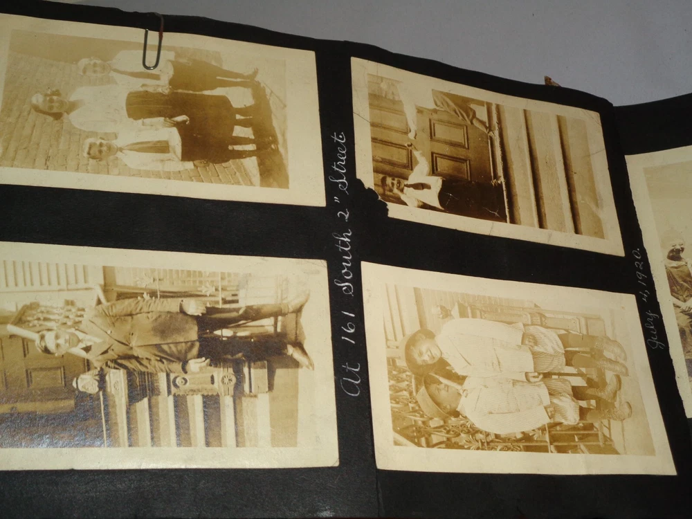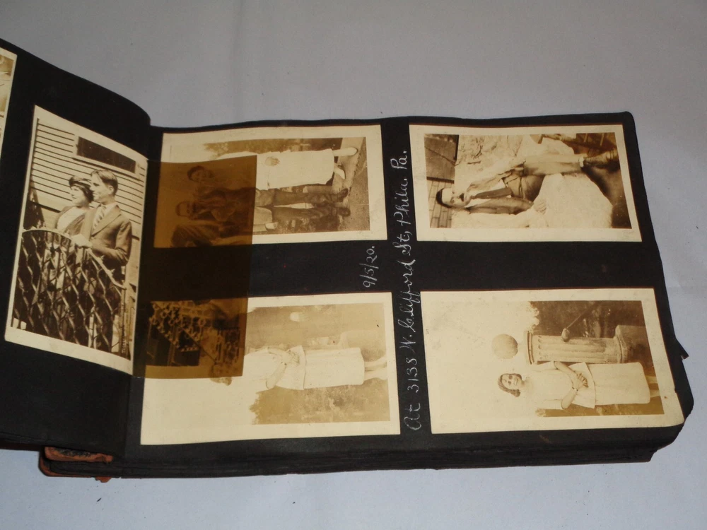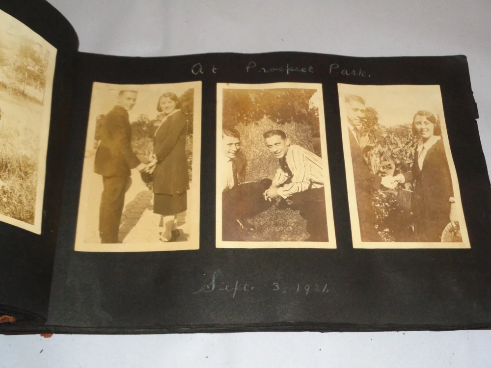 Antique Original 1920s New York City & Area Rare Photo Album - Over 400 Photos Many pages have information written on them to include the location and date. On the first page, it states that the album begins in June 1920, but photo captions indicate that the earliest is from 1918 and the latest date that I can find is 1921. Locations include Brighton Beach, Ellis Island, Brooklyn, Hudson River, Neversink, Far Rockaway, Long Beach, Coney Island, Prospect Park, Rockaway Beach, Central Park, and more. Photos are mostly of people, friends, and family at various locations mentioned above. One of the photos is of Ellis Island Commissioner Frederick Wallis. As you go through the book, you see that the caption information stops, and there is no longer dates and places written on pages. There are approximately 441 Photos altogether, give or take, and two photo negatives. The photos are affixed to the pages. There are over 125 pages. The album itself measures about 7" x 11 3/8". Photos measure from 1 7/8" x 2 7/8" (smallest) to 2 3/4" x 4 3/4" (largest). There are around 10 blank pages in the back of the album. This album is in antique condition and is extremely fragile. The front cover is loose, and there is no back cover. There are additional loose pages in both the front of the album and in the back. There is heavy cracking, discoloration and wear to the front cover. There are stray pieces of tape on the cover and on the binding, where it appears someone tried to tape the front cover on. Note that there is edge chipping, tearing, cracking, missing corners, discoloration, and other wear throughout the book. There are paperclips randomly dispersed throughout as well, and these paperclips are rusted, leaving a mark on photos it touched. Some pages are cracked around the photos, such on the page of Commissioner Frederick Wallis (see photo). There is also an old storage-type scent, which is understandable. Overall, this album needs to be handled with care and should be historically preserved. Please see photos for more information on condition and ask any questions you may have. This would be a nice addition to any collection.