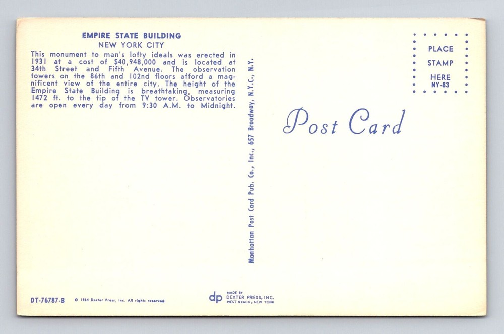 New York City Empire State Building Antique Vintage Souvenir Postcard NYC Landmark Collectible Memorabilia
