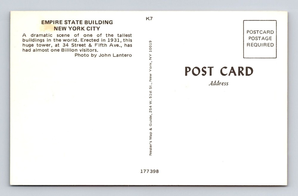 New York City Empire State Building Vintage Postcard NY NYC Retro Landmark Souvenir