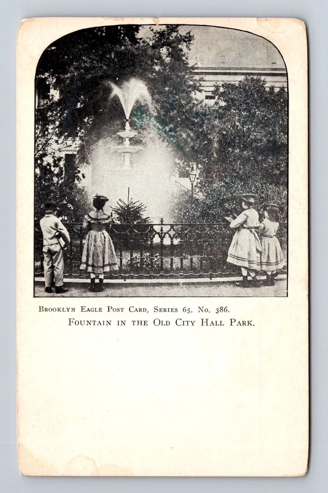 New York City, Fountain in Old City Hall Park, Antique Souvenir Vintage Postcard