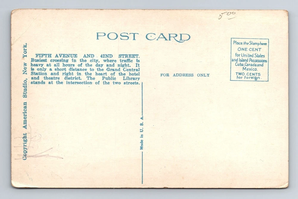 Postage Condition: Unposted Subject: Cities & Towns Unit of Sale: Single Unit Region: New York Era: Vintage Theme: Cities & Towns Original/Licensed Reprint: Original Material: Paper Country/Region of Manufacture: Unknown Type: Printed (Lithograph) Country: USA Size: Standard (5.5 x 3.5 in) City: New York City
