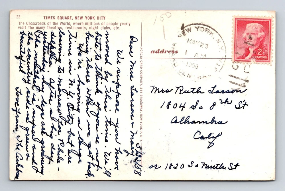 Postage Condition: Posted Subject: Cities & Towns Type: Printed (Lithograph) Country/Region of Manufacture: Unknown Theme: Cities & Towns Country: USA Region: New York Original/Licensed Reprint: Original Unit of Sale: Single Unit City: New York City Era: Vintage