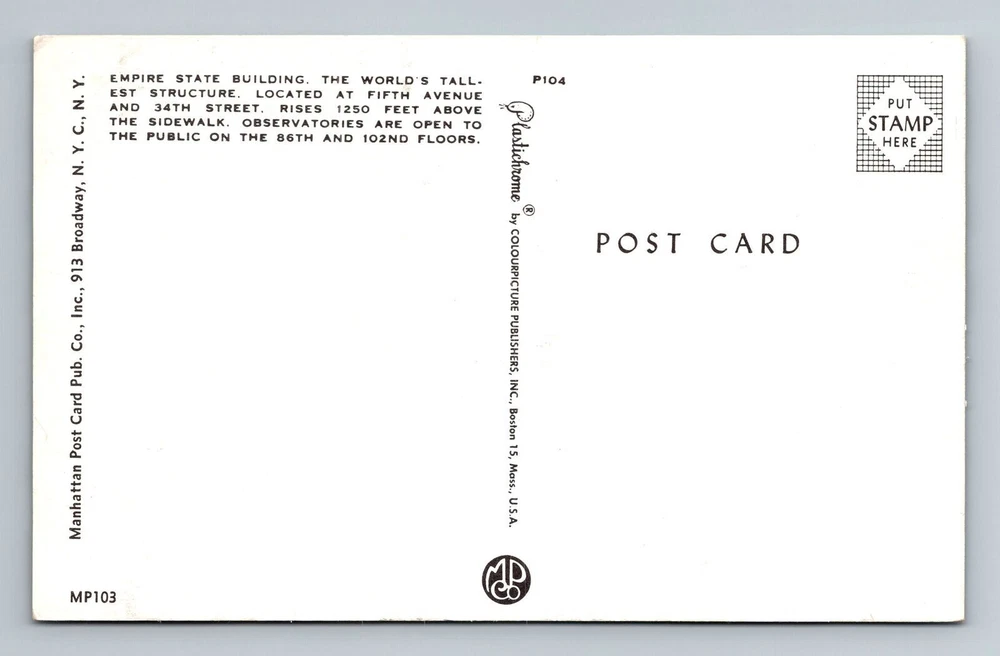 New York City NY, City, Empire State Building, Vintage Postcard