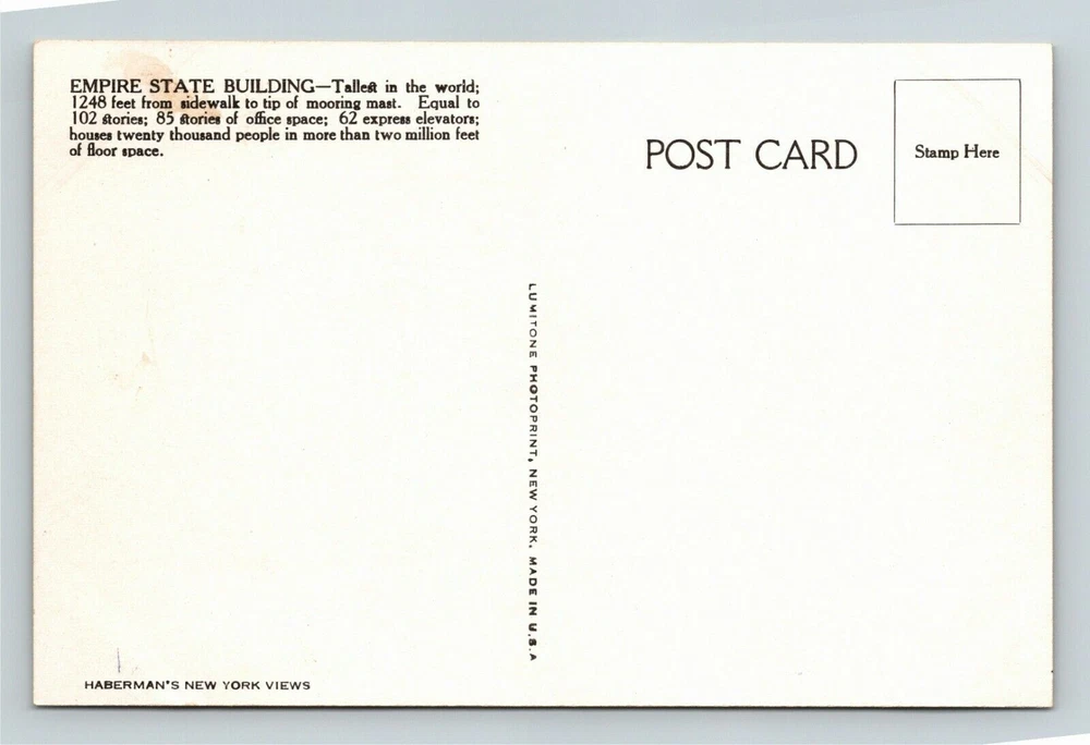 New York City NY, Empire State Building, Vintage Postcard