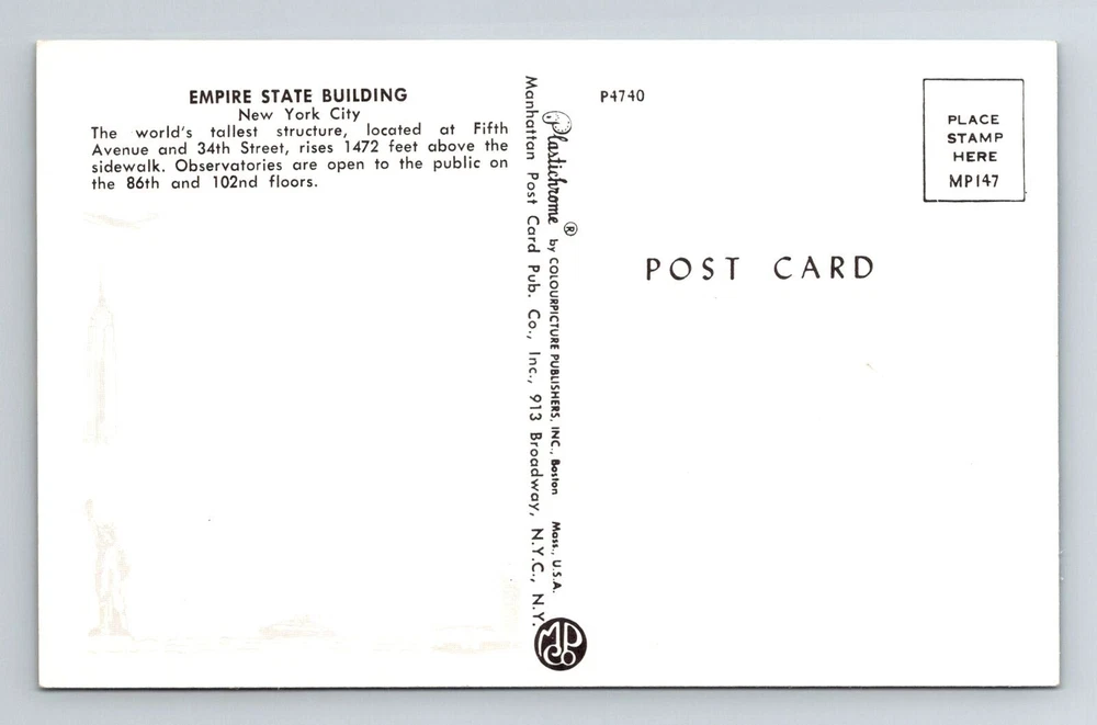 Country/Region of Manufacture: Unknown Era: Vintage Original/Licensed Reprint: Original Country: USA Postage Condition: See Image Theme: Cities & Towns Region: New York Subject: Cities & Towns Type: Printed (Lithograph) City: New York City Unit of Sale: Single Unit