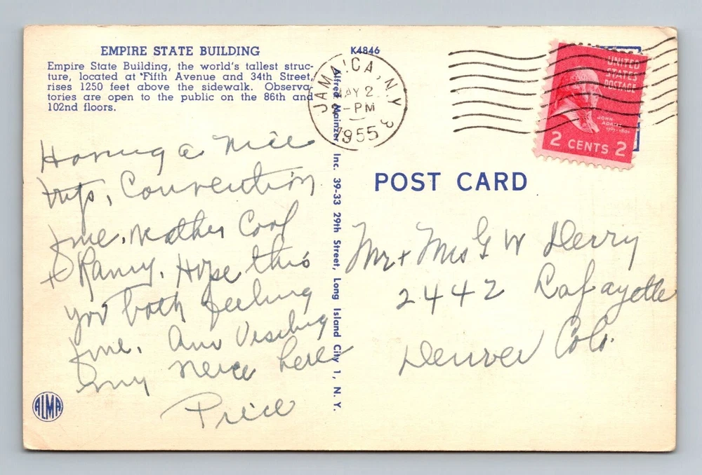 New York City NY, Empire State Building, Vintage c1955 Postcard