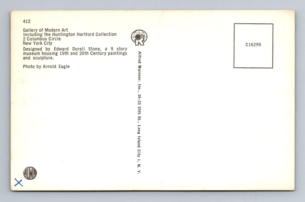 New York City NY, Gallery of Modern Art, Vintage Postcard