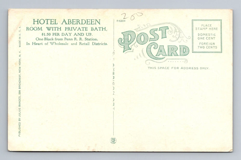 New York City NY, Hotel Aberdeen, Souvenir, Vintage Postcard