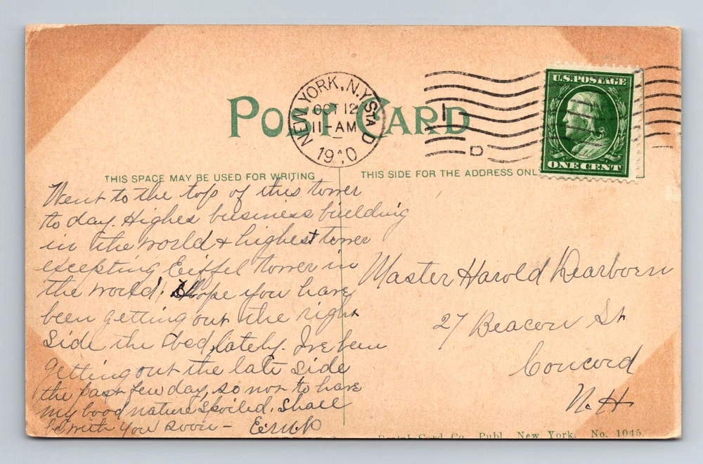 Unit of Sale: Single Unit City: New York City Era: Vintage Region: New York Country/Region of Manufacture: Unknown Type: Printed (Lithograph) Postage Condition: Posted Theme: Cities & Towns Original/Licensed Reprint: Original Subject: Cities & Towns Country: USA