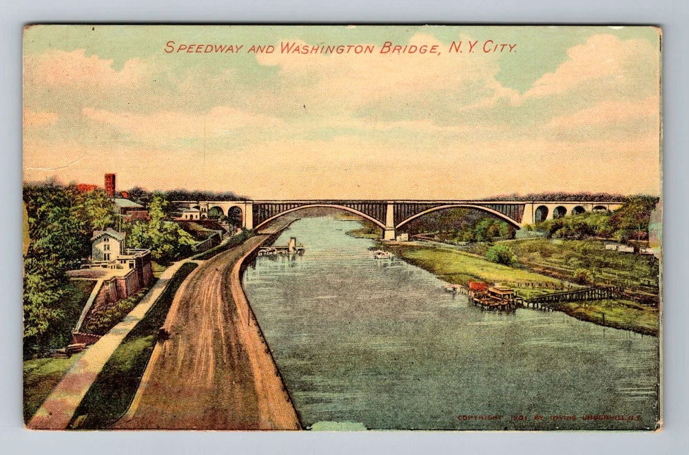 New York City NY,, Speedway & Washington Bridge Vintage Souvenir Postcard