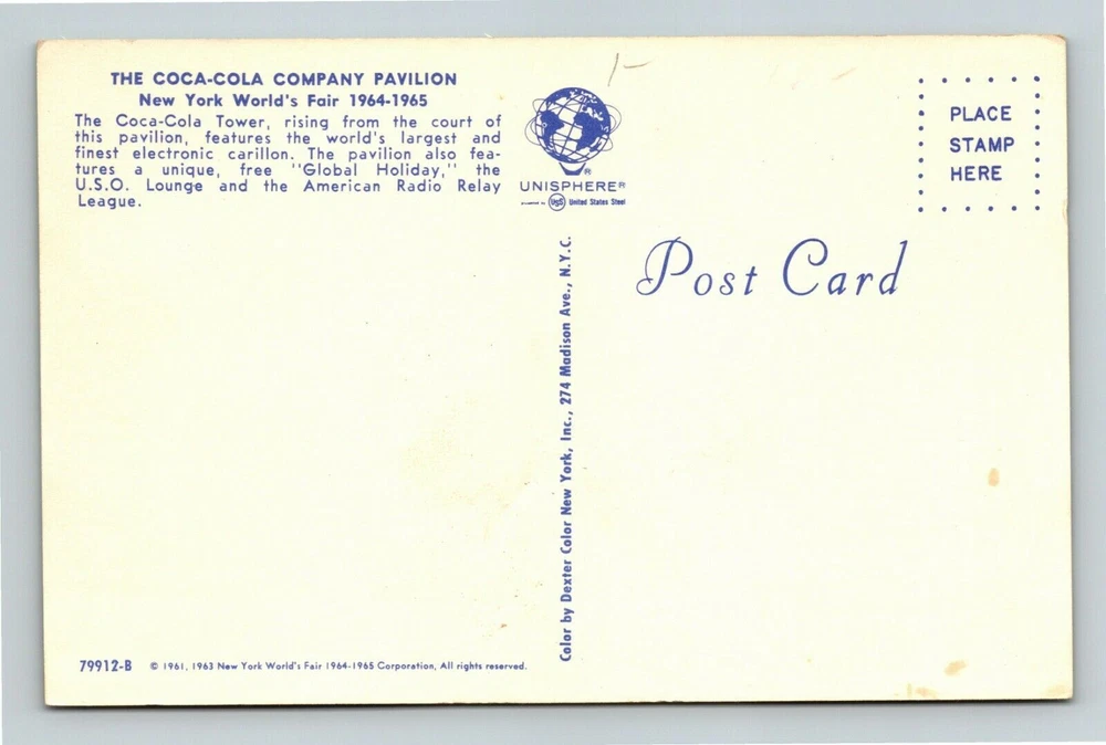 New York City NY,, World's Fair, Coca-Cola Pavilion Vintage Souvenir Postcard