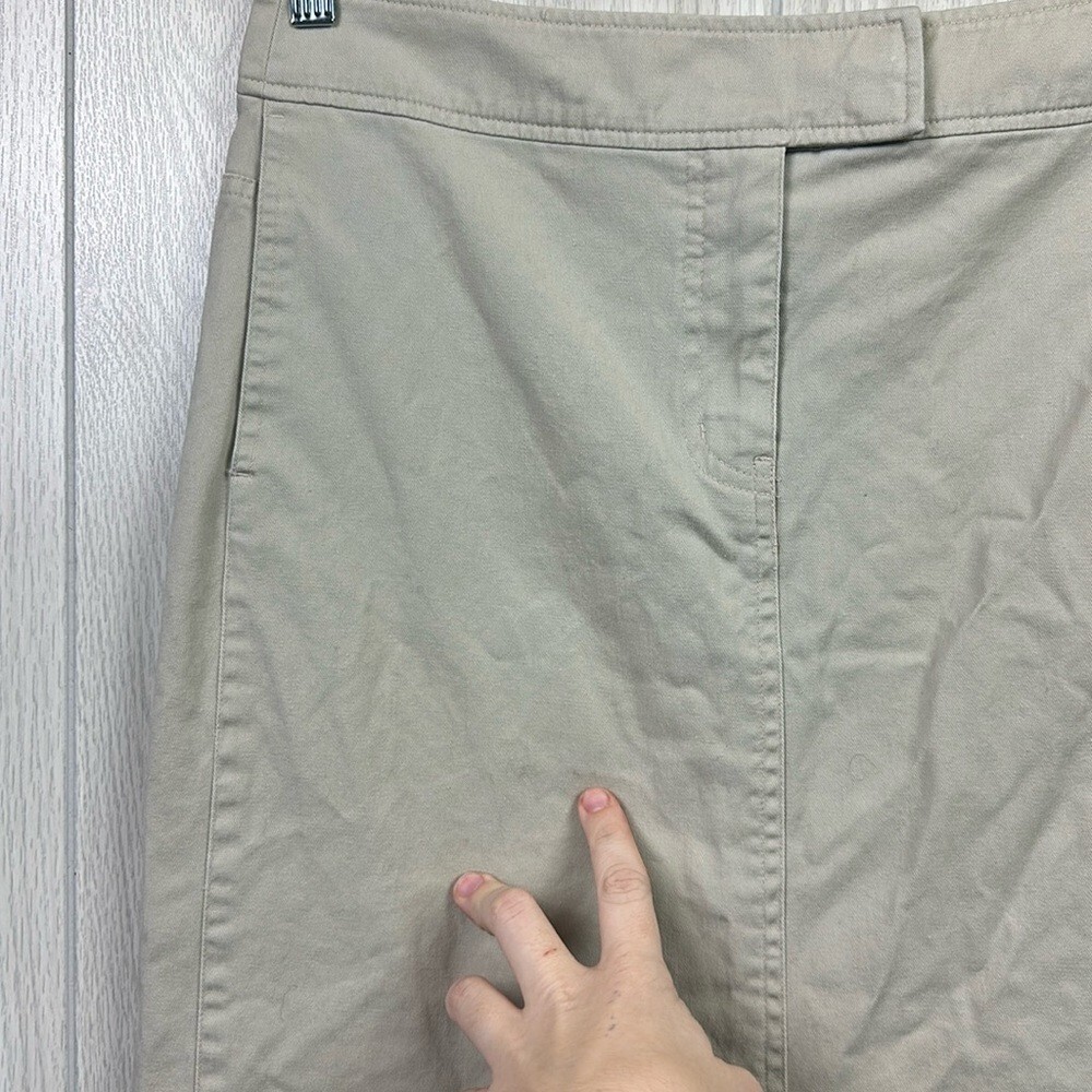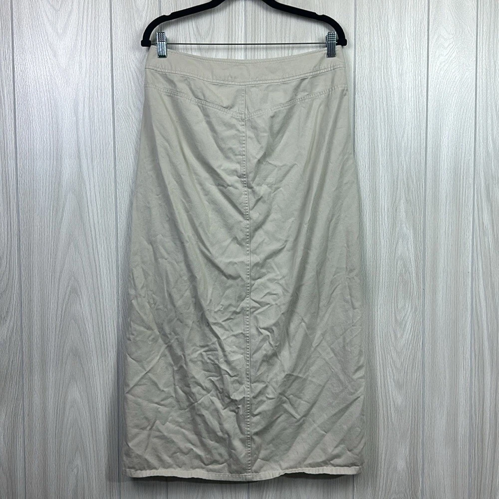 New York & Company Womens Khaki Skirt 8 Tan Slinky Midi Maxi Slit Modest Utility Weight: .12oz Size: 8 Condition? Good, preowned condition. Two very very small spots on the front upper left of the skirt. Pointed out in photos. This has been previously worn. Midi/maxi depending on your height All items are shipped from a smoke free home. If you purchase a bundle of three or more items, I will provide free shipping.