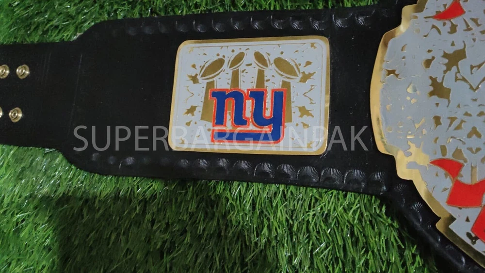 Welcome to our shop ------------------------------------------- We are specialist in manufacturing handmade products:: Our wide range of products include: >>>>Championship Belts WWE | WWF | AEW | UFC | WBC | WCW MINI SIZE ALSO AVAILAVLE FOR CHILD Product Description *** New York Giants Championship Belt Adult size *** Plate Metal: Brass (Zinc available on request with additional cost) Strap: 100% Leather Largest Waist Size: Fits upto 46'' Belt Length: ~50" Weight: 4.17 lbs | 2.01 Kg Plate Thickness: 2mm (4mm Version available on demand with additional cost) ::The belt is well crafted and manufactured to meet the quality demands of fans:: Get your hands on this marvelous piece now! Note: If you need further details kindly inbox us, we will try to be as responsive as possible. ------------------------------------------- Return Policy: Generally we don't have much complains on our products and we make sure to 100% satisfy our clients. We send the product in well Bubble Wrapped packaging so there is highly unlike chance of getting damaged item. In case there is a damage, we will try to give partial refund or you can ask for full refund within 30 days after returning the belt to origin. NOTE: 1. If you have placed the order by mistake or you have purchased a wrong item then we are not going to refund that. 2. Buyer will pay the shipping fee of returning the belt. ------------------------------------------- Happy Shopping! :)