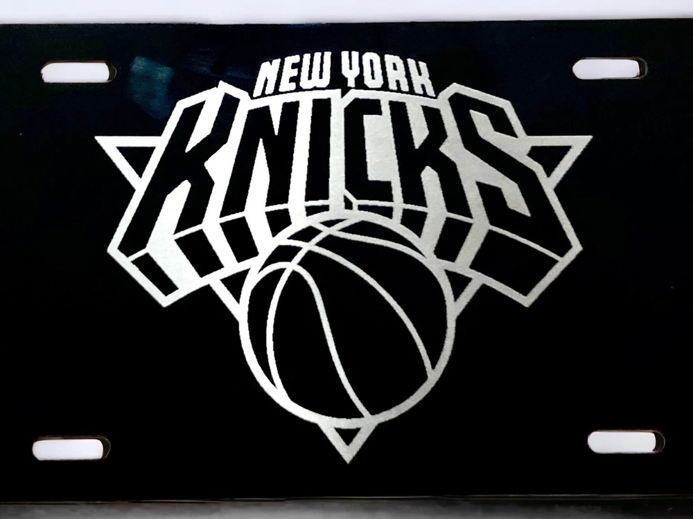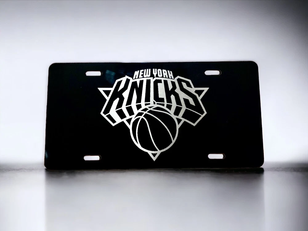 Show off your love for the New York Knicks with this laser engraved aluminum front license plate! Measuring 12 inches in length and 6 inches in height, this plate is suitable for any car and easily attaches with screw-on technology. The black color and sports team theme make it a great addition to any Knicks fan's vehicle. Crafted in the United States with durable materials, this license plate is road legal and has universal fitment. Perfect for any Knicks fan, this plate is a great way to show off your team spirit on the road.