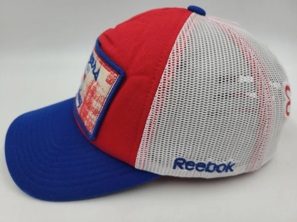 Has some stains near the back as seen in photos. New York Rangers Reebok Mesh Trucker Snapback Hat Cap NHL Hockey Red Blue White. EACH ADDITIONAL HAT PURCHASED IS ONLY $1 ADDED SHIPPING!