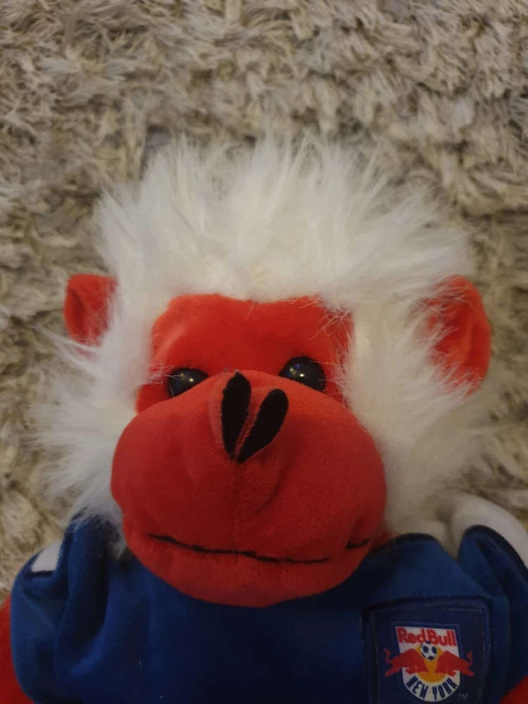 Show your support for the New York Red Bulls with this official MLS soccer shirt. The red monkey design is a must-have for any fan of the team. Made from high-quality materials, this shirt is perfect for wearing to games or displaying in your collection. Whether you're a die-hard fan or just looking for a unique piece of sports memorabilia, this Red Bulls shirt is a great addition to your collection. With its bold design and high-quality construction, it's sure to become a favourite item for years to come.