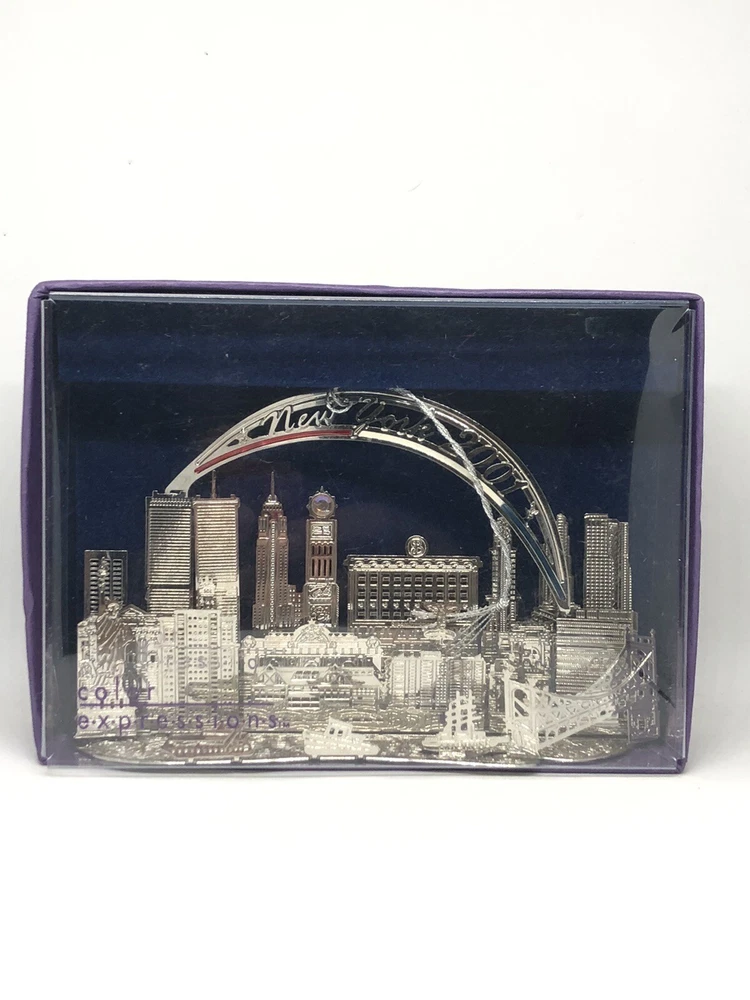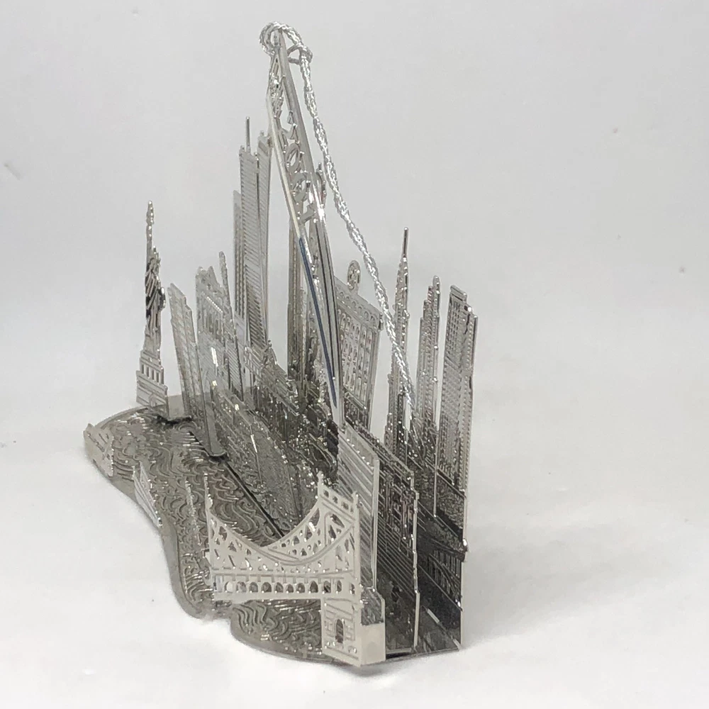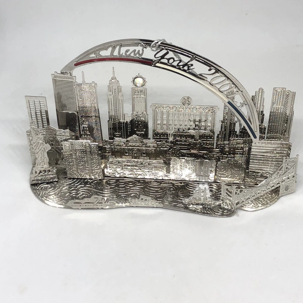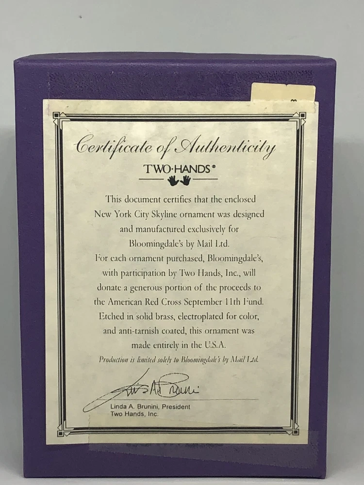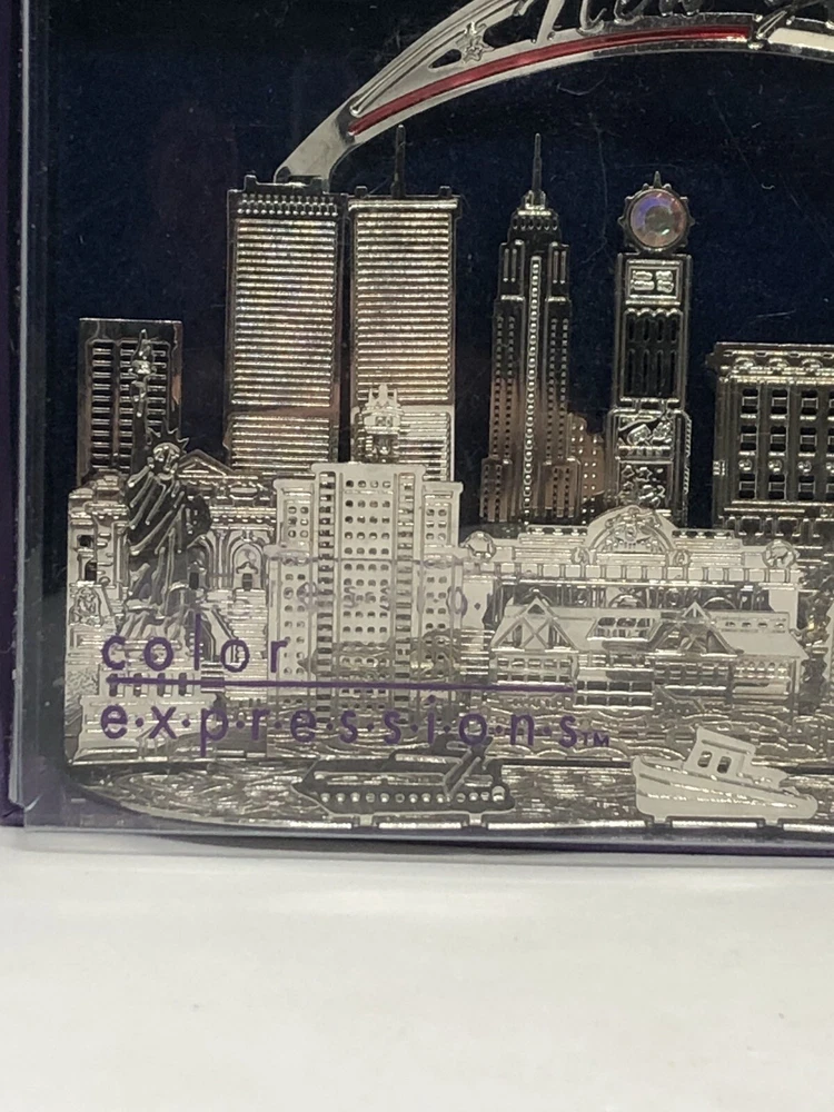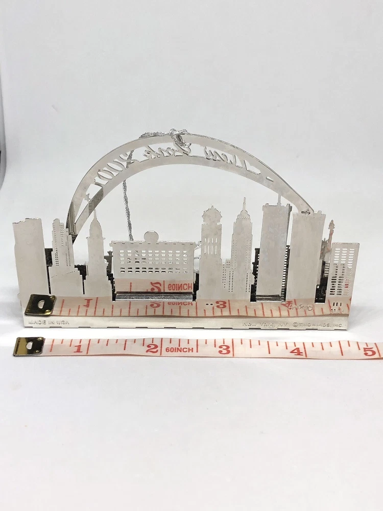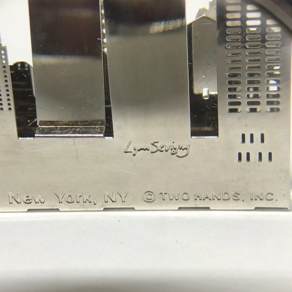 New York Style Skyline Etched Brass Two Hands Signed Lynn Sevigny Ornament With Certificate of Authenticity! Thank you for stopping by!