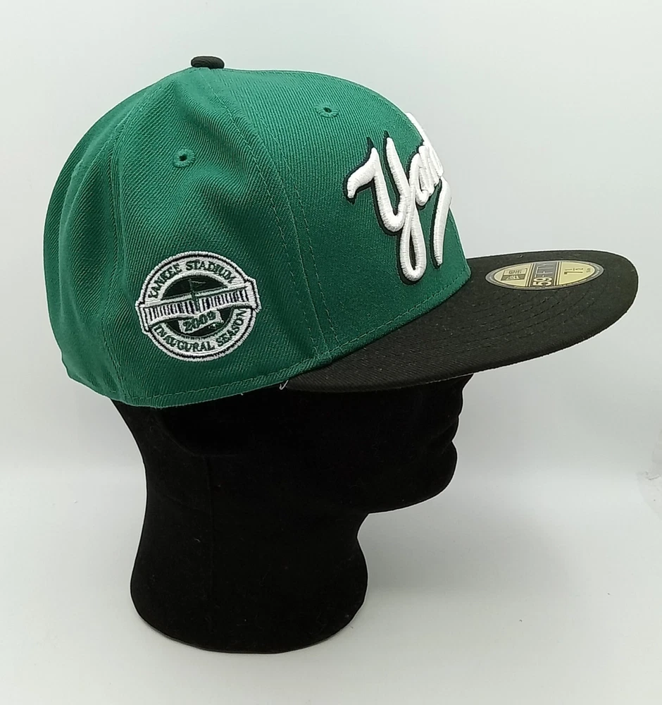 NWT. Show off your love for the New York Yankees with this stylish and comfortable New Era 59Fifty Cap. This unisex adult hat is the perfect accessory for any baseball fan, featuring the iconic team logo and a green color scheme. The cap is made in China and is available in size 7 1/2, making it a great fit for any head size. Celebrate the 2009 inaugural season of the New York Yankees with this embroidered cap. Perfect for game day or everyday wear, this hat is a must-have for any true fan. Don't miss out on the opportunity to add this unique and stylish cap to your collection. F13 BOX - 1269