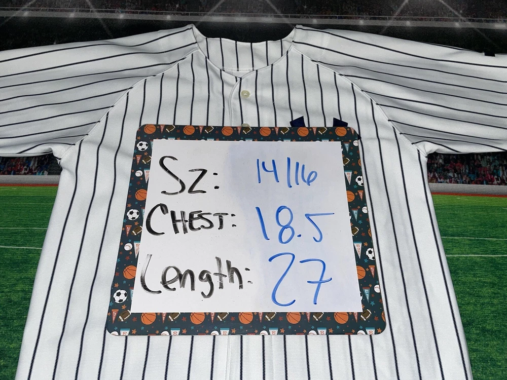 We try our best to fit the best description possible , condition and pictures please fill free for any questions or concerns thanks Step up your game day experience with the New York Yankees Andy Pettitte #46 Majestic Jersey. This youth-sized 14/16 jersey lets the young fan show their support in true Yankee style. It features the classic white color, complemented by the iconic pinstripes synonymous with the team's heritage. Perfect for cheering during the regular season, this jersey ensures the next generation of fans can feel a part of the action. Crafted with quality fabrics, this jersey offers both comfort and durability for everyday wear or game day festivities. Majestic, known for their high standards in sports apparel, delivers a piece that resonates with the spirit of baseball and the legacy of Andy Pettitte. Whether it's for a game or just to show off their Yankees pride, this jersey is a must-have for any young fan's collection.