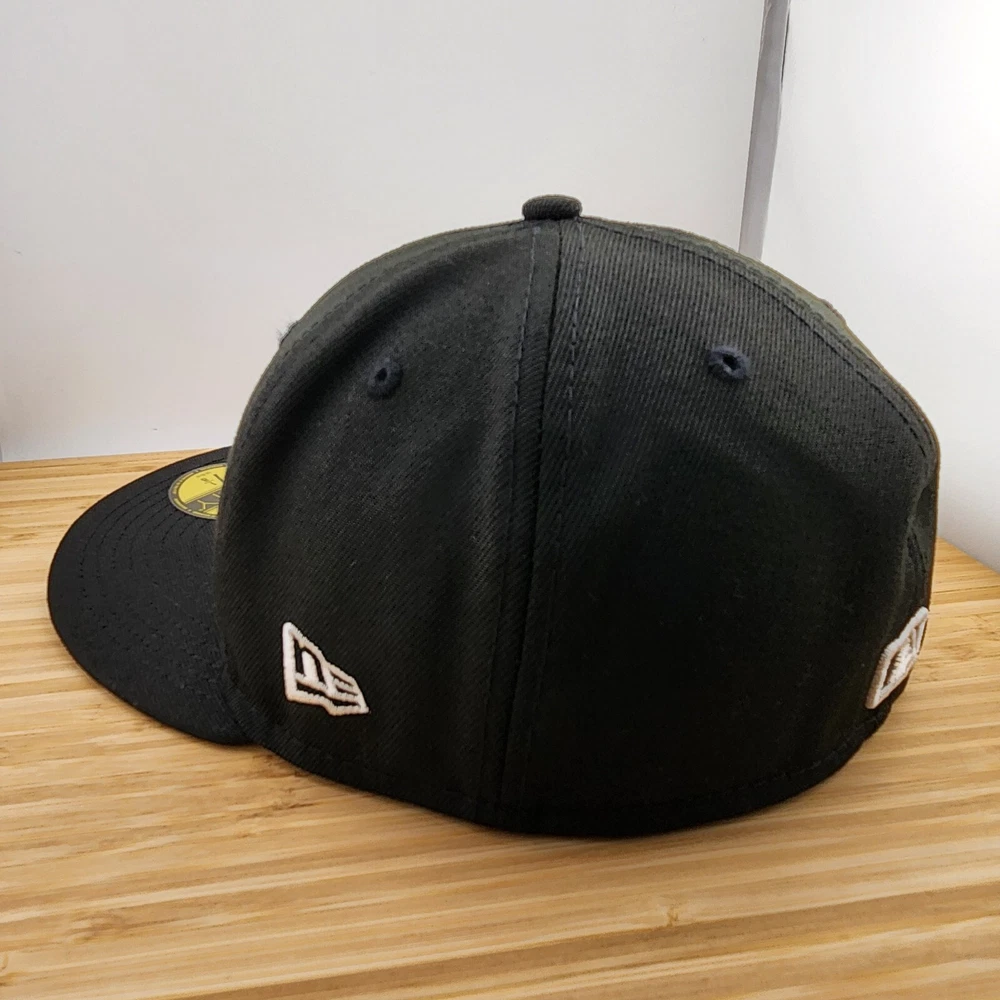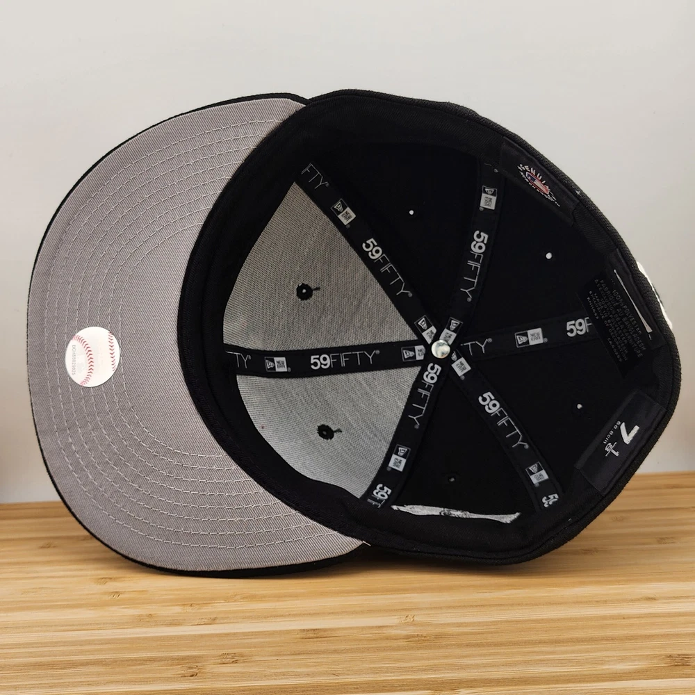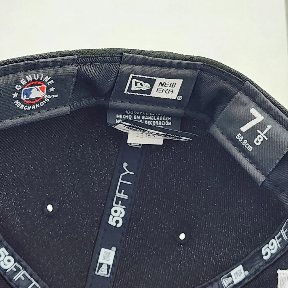 Show off your love for the New York Yankees with this black fitted hat from New Era. Featuring the iconic team logo and a solid pattern, this baseball cap is perfect for any sports fan. Made with high-quality polyester material, this hat is comfortable to wear and durable for everyday use. Whether you're headed to a game or just running errands, this MLB Yankees hat is the perfect accessory to add to your collection. Available in size 7 1/8, this hat is designed for men and is a great addition to any wardrobe. Get yours today and show your support for the New York Yankees!