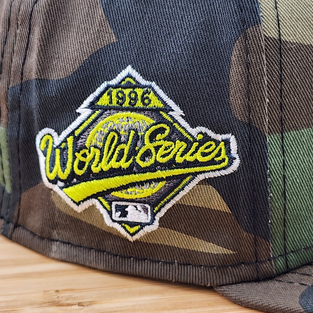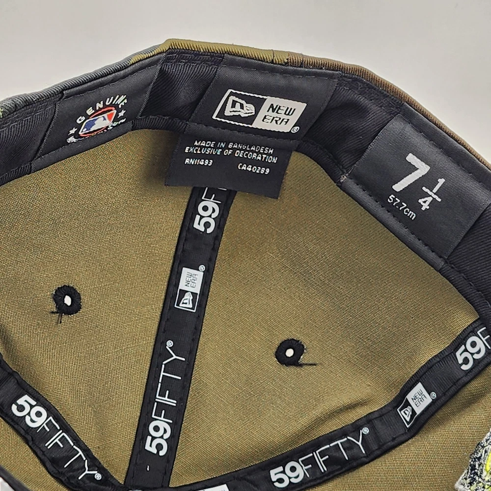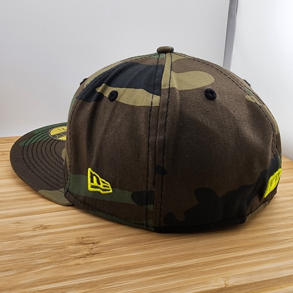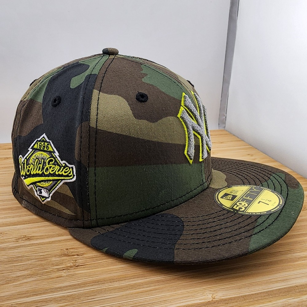 Show your support for the New York Yankees with this officially licensed New Era fitted hat. The camo design with neon highlights is perfect for any unisex adult fan. Made from high-quality materials in Bangladesh, this hat is a must-have for any Major League baseball enthusiast. The size 7 1/4 hat is perfect for a comfortable fit and features the iconic Yankees logo. Wear it to the game or simply as a fashion statement. Get your hands on this unique piece of fan apparel and show your love for the Bronx Bombers.