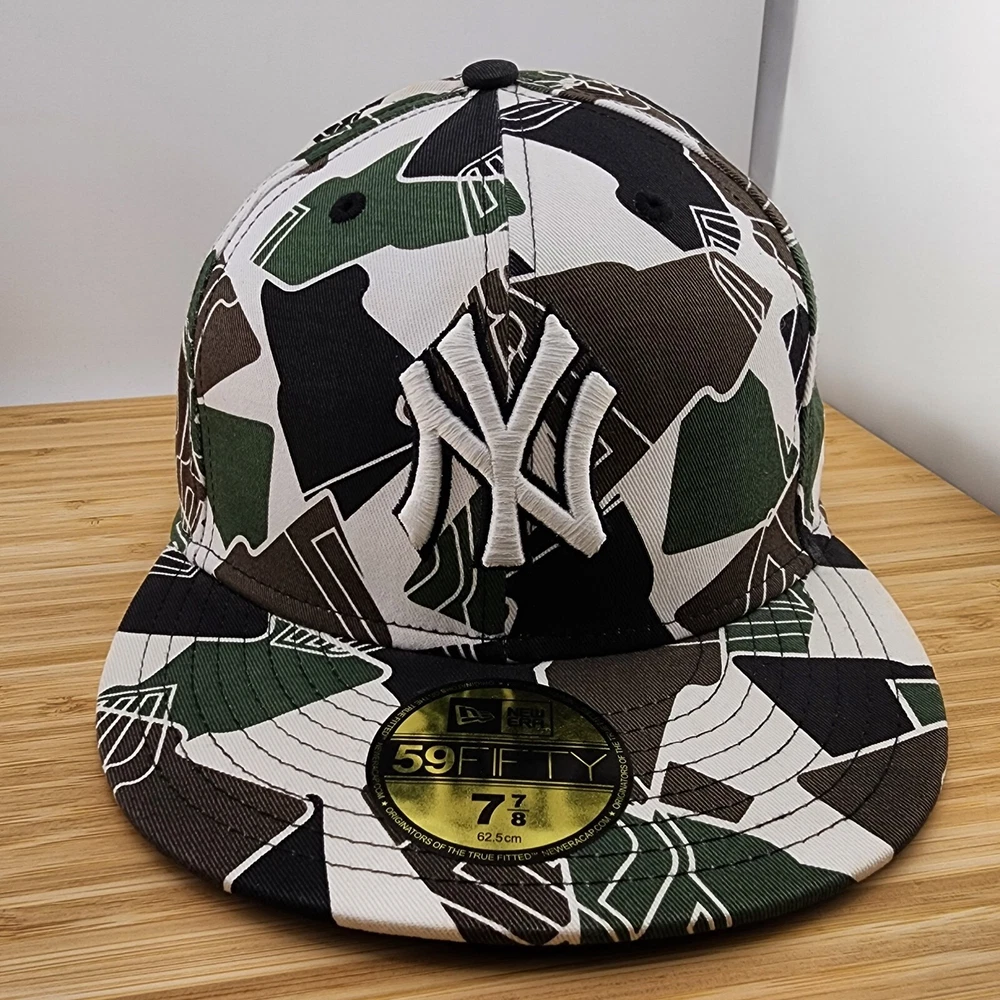 Show off your love for the New York Yankees with this stylish fitted hat. The geometric camo design adds a unique touch to this cap, made from 100% cotton and crafted by New Era. Perfect for game day or everyday wear, this hat is available in size 7 7/8 and features the iconic Yankees logo. Made in China, this cap is a must-have for any fan of the team.