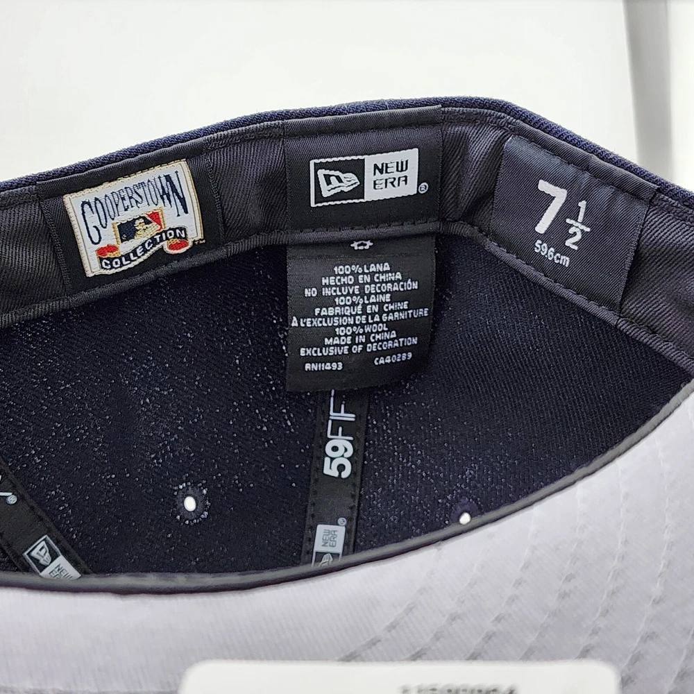 Show off your love for the New York Yankees with this stylish hat from the Cooperstown Collection by New Era. Made with 100% wool, this cap is perfect for any fan of the Major League Baseball team. The blue color and the team's logo on the front make it a must-have accessory for any true Yankees supporter. This cap is available in size 7 1/2 and is designed for men. It is perfect for game day or just everyday wear. Made in China, this cap is a great addition to any fan's collection. Get yours today and show your support for the New York Yankees!