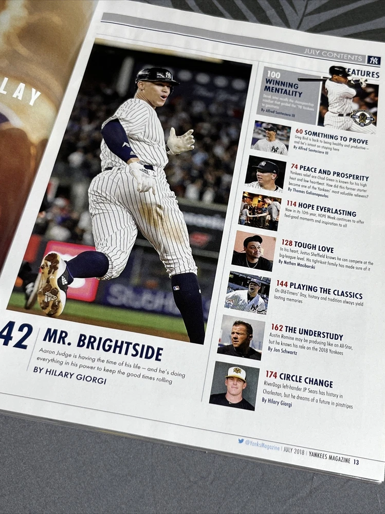 gtin13: Does not apply Publication Month: July UPC: Does not apply Country/Region of Manufacture: United States Language: English Publication Year: 2018 Publication Name: Yankees Magazine Topic: New York Yankees Baseball, Aaron Judge Genre: Celebrity, History, Sports, Baseball, N.Y. Yankees Publication Frequency: Monthly