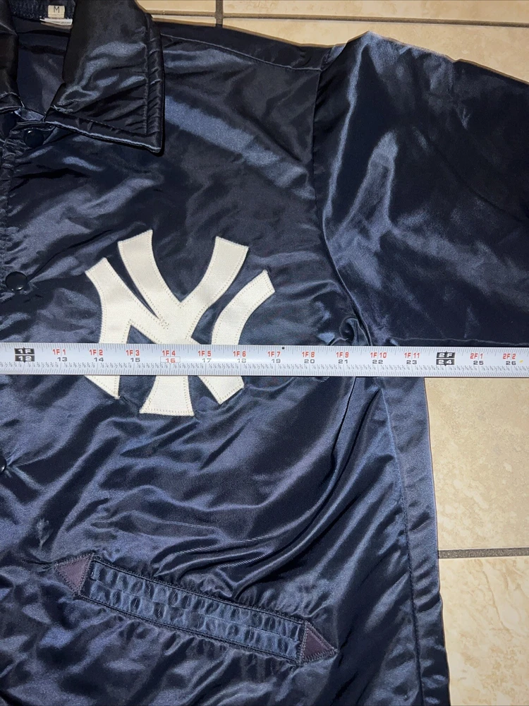 Show off your love for the New York Yankees with this vintage 90s navy blue nylon windbreaker jacket. Featuring the iconic team logo sewn onto the chest, this jacket is perfect for any MLB fan. Made from high-quality materials, this jacket is both durable and comfortable to wear. Check photos for measurements