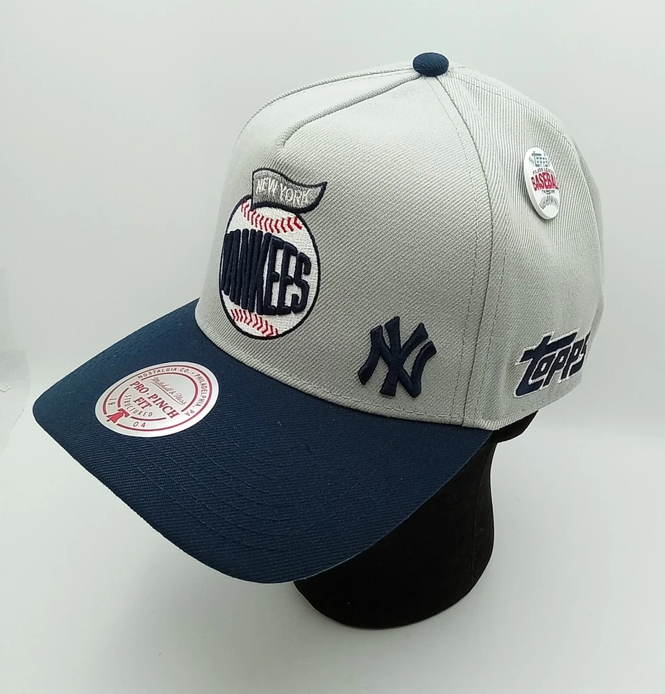 NWT. Show off your love for the New York Yankees with this Mitchell & Ness Topps Pro Pinch Fit Cap Snapback. This stylish and comfortable cap features the iconic Yankees logo and is perfect for any fan. It is made with high-quality materials and has a snapback closure to ensure a perfect fit for all head sizes. Represent your favorite team in style with this gray cap, perfect for both men and women. It features the Topps Baseball hat pin and is made in China. This cap is a must-have for any Yankees fan and is perfect for game day or everyday wear. Get yours today! HAT BOX 6 - 1332