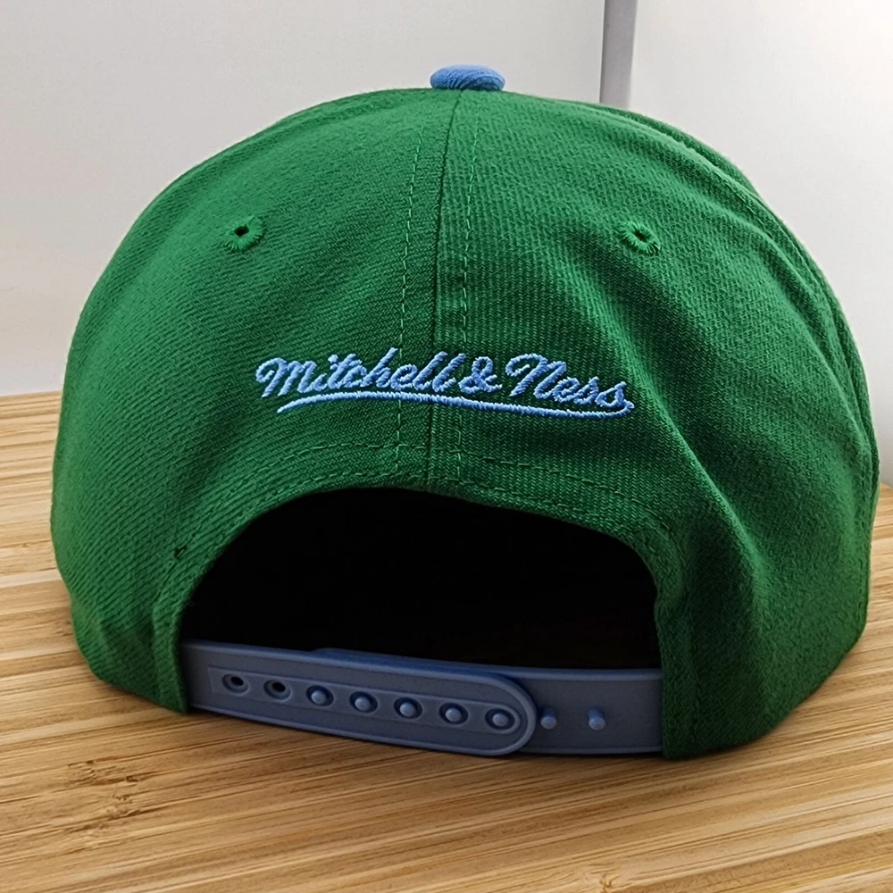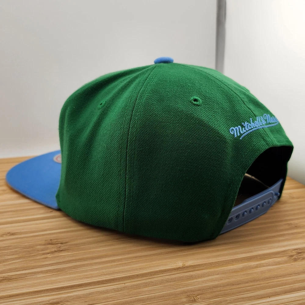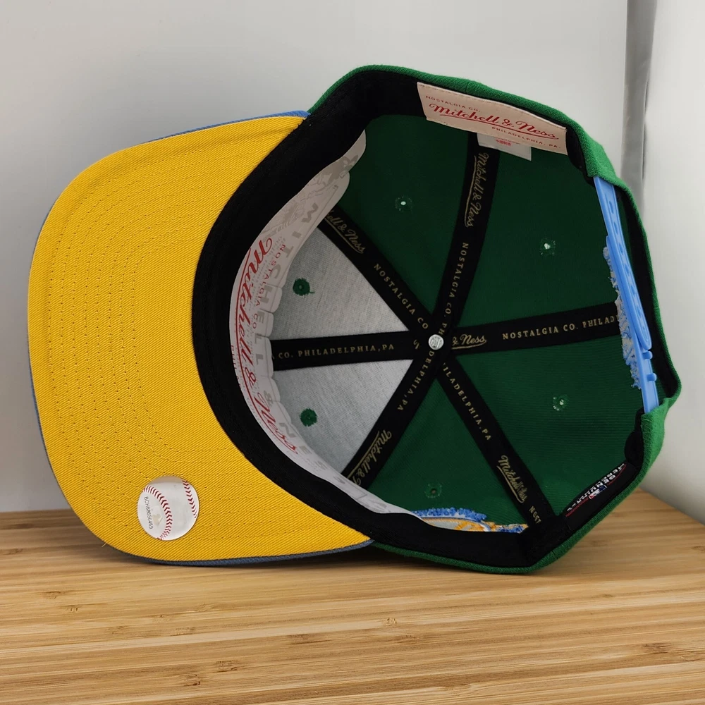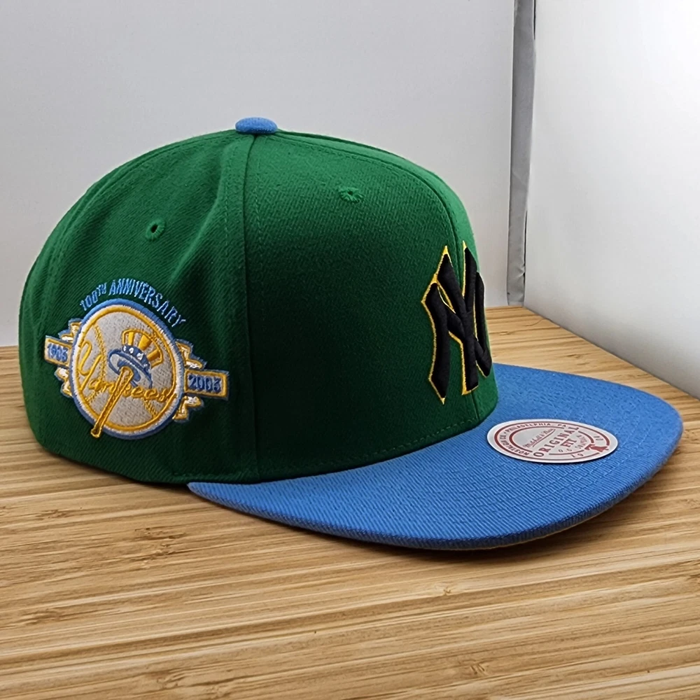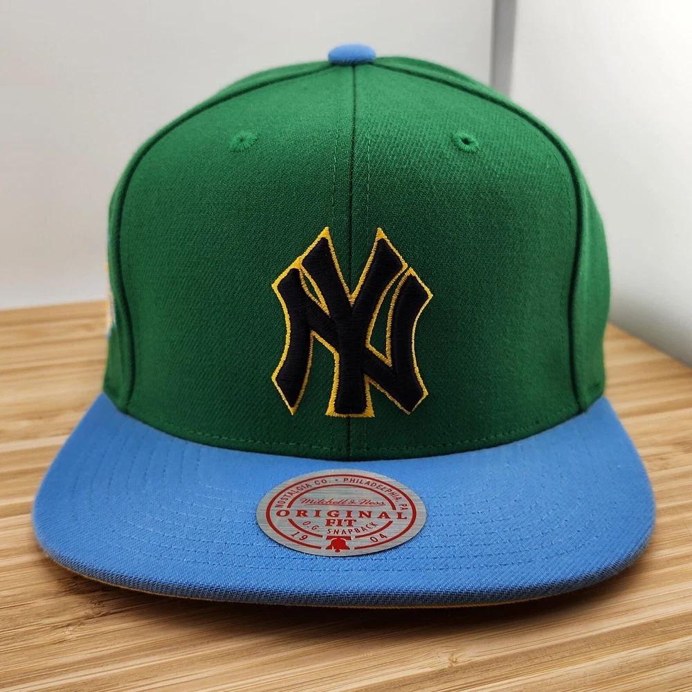 Show off your love for the New York Yankees with this Mitchell & Ness Wave Runner cap. The green and blue color combination is perfect for any Yankees fan. This officially licensed MLB cap is a must-have for any baseball enthusiast. The one size fits all cap is made in China and features the iconic Yankees logo. It's perfect for men who want to add a touch of style to their fan apparel. Get this snapback cap today and show your support for your favorite team.