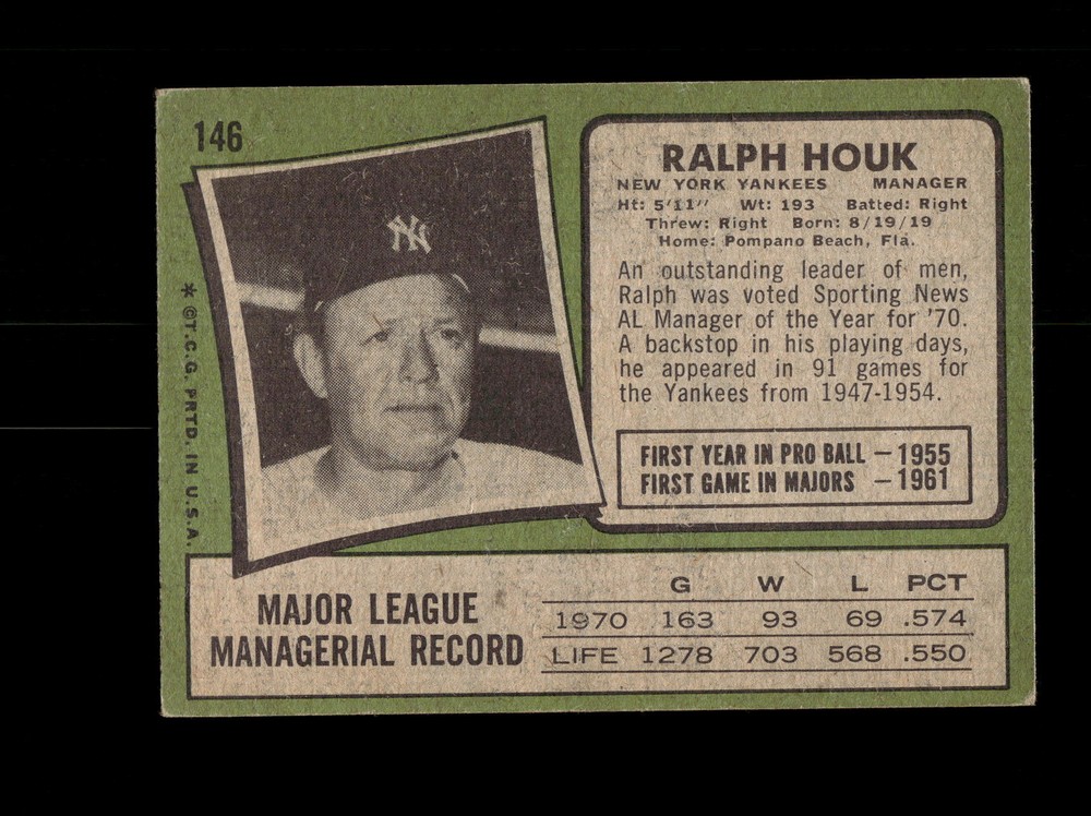 Near Mint or Better New York Yankees Ralph Houk #146 Topps 1971 sports Baseball Most days I put cards up all day long. I have a very large inventory concentrating mainly on the 70s With plans to fill in the gaps throughout the 50s and 60s as well. If you type the team name on my site you will pull up every card in that team same way with the year I have almost every card through the 70s up all the time. Good luck and enjoy the store