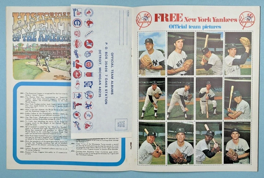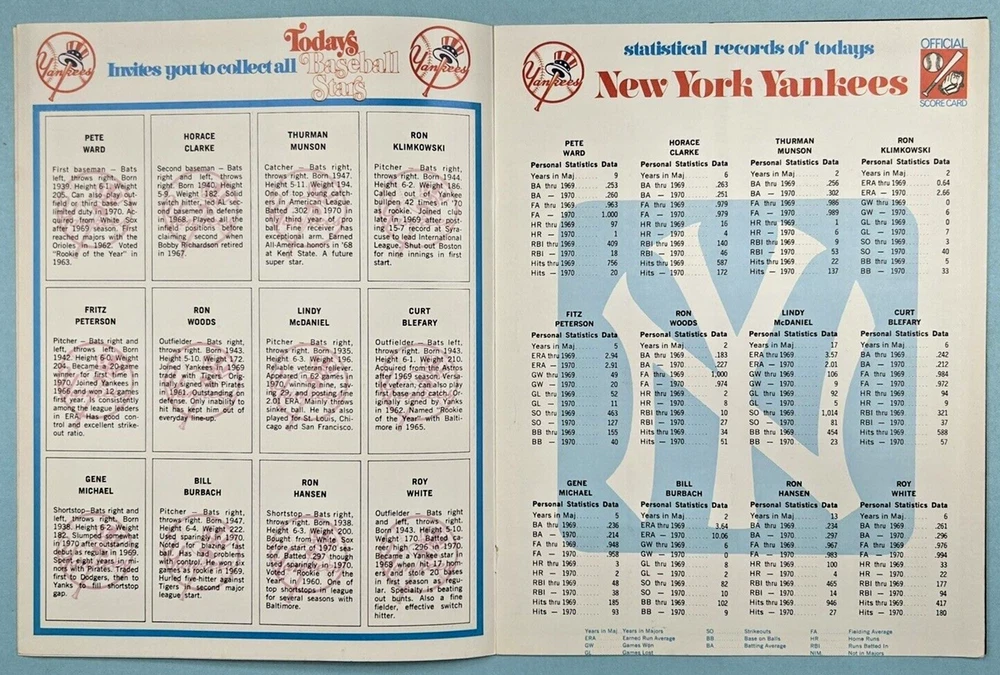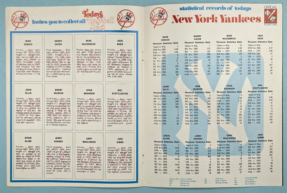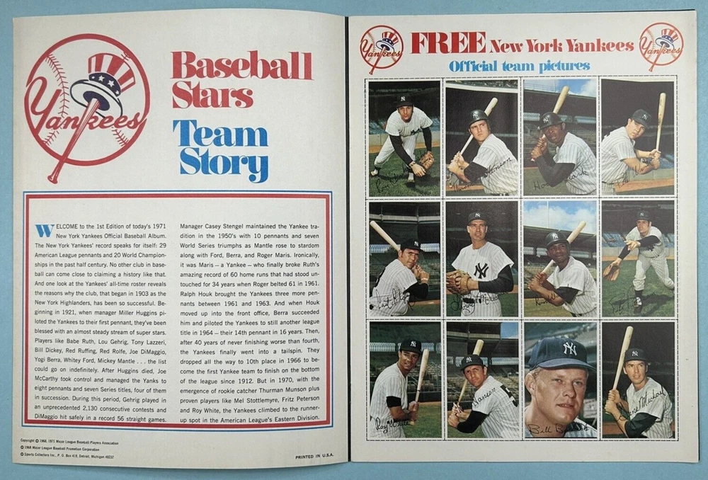 Today's 1971 New York Yankees. Softcover magazine format. Complete with mailing envelope bound in. Features Roy White, Mel Stottlemeyre, Bobby Murcer, etc. Note: This item will be properly packed.