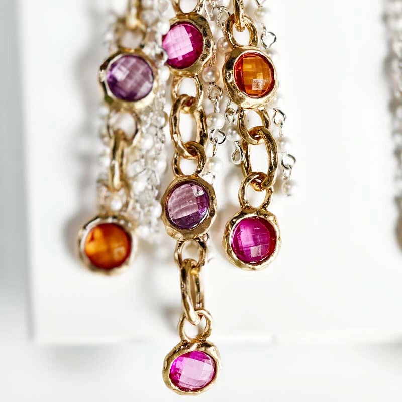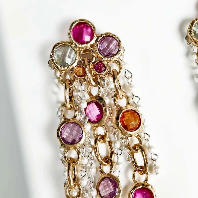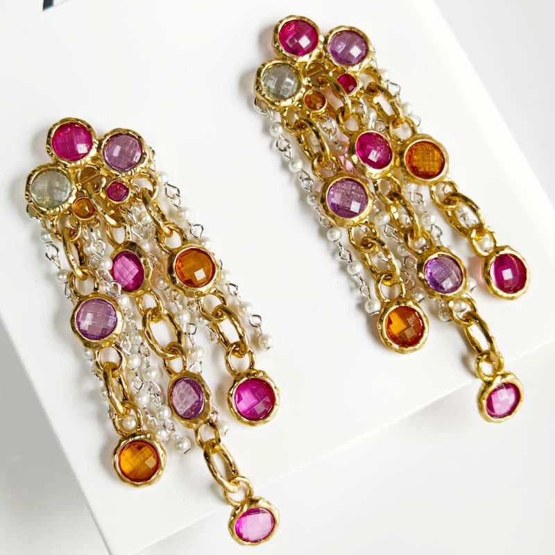 UPC: Does not apply Color: Antique Gold+Silver+Multicolor Secondary Stone: Plastic Pearl Customized: No Type: Earrings Antique: No Main Color: Antique Gold+Silver+Multicolor Main Stone Shape: Round Shape: Tassel Metal: Alloy Item Length: 100mm Theme: Statement Features: Nickel-Free lot: No Number of Gemstones: None Personalize: No Handmade: Yes gtin13: Does not apply Occasion: Anniversary, Birthday, Christmas, Graduation, Mother's Day, Valentine's Day, Wedding Setting Style: None Style: Dangle/Drop, Huggie, Tassel Item Diameter: None Closure: Studs Brand: Zara Main Stone Treatment: Filled Base Metal: Alloy Modified Item: No Certification: None Main Stone Creation: Simulated Signed: No Main Stone Color: Mauve Country/Region of Manufacture: China Gongying: huahai12000-00009-jin23 Signed?: Unsigned Metal Purity: Unknown Country of Origin: China Vintage: No Main Stone: Acrylic Gender: Female Material: Alloy Wholesale: No