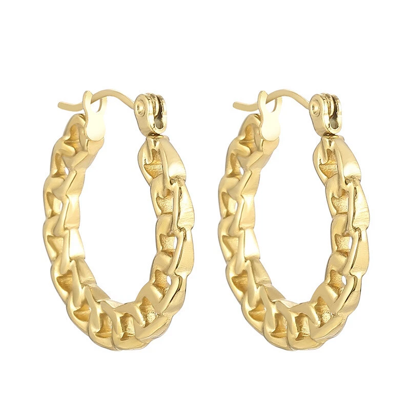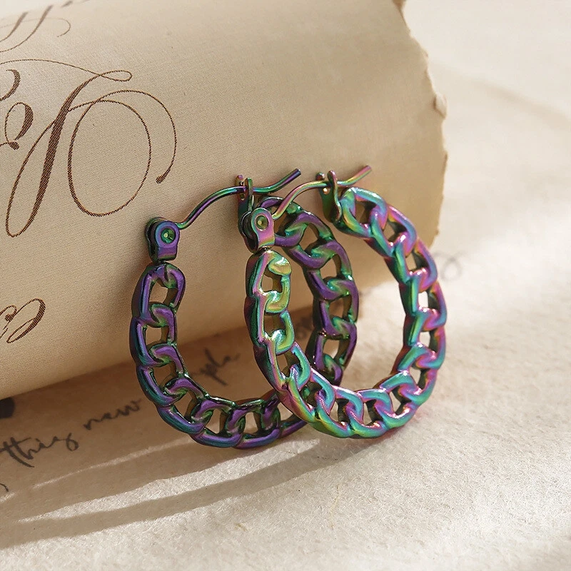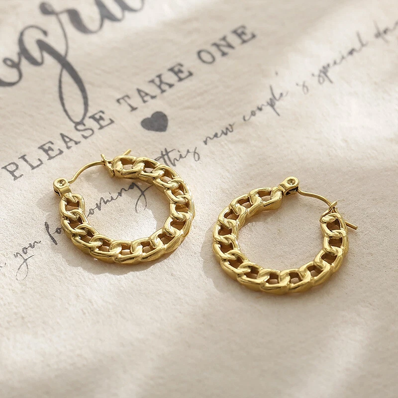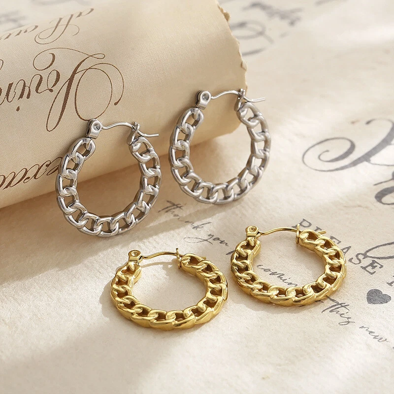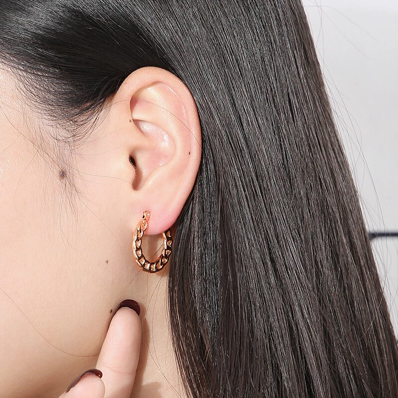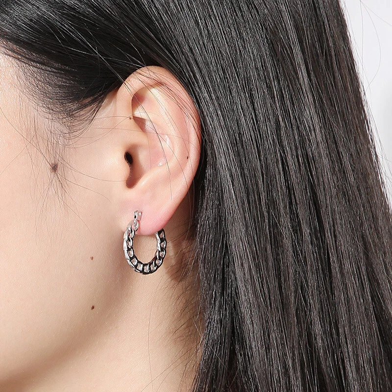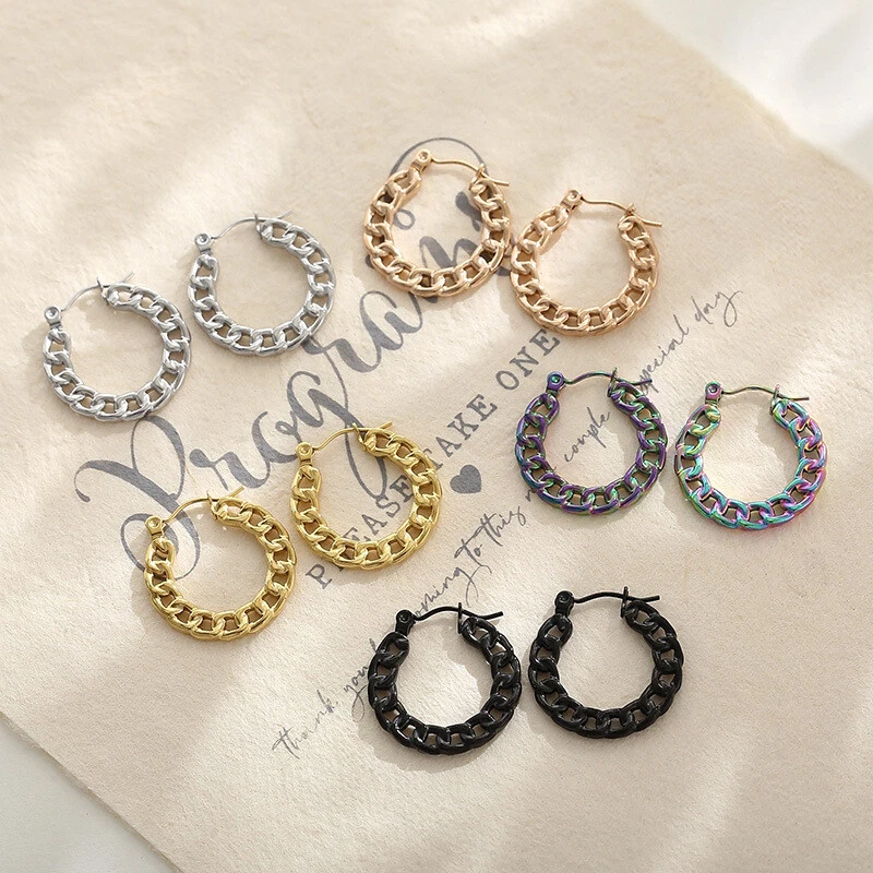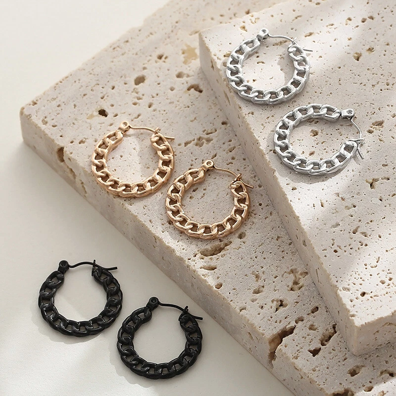 New chain round earrings Titanium steel Cuban chain chain earrings for women