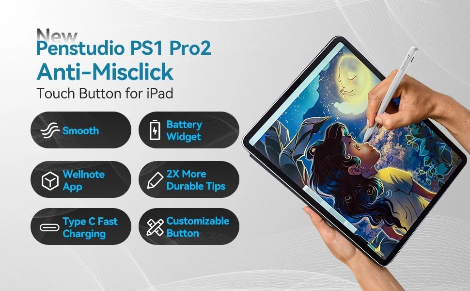 New iPad Pencil for iPad/iPad Air/iPad Mini/iPad Pro|Anti Misclick|PS1 Pro2