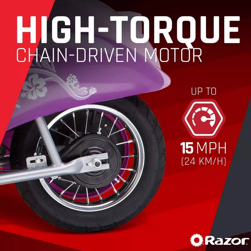 This stylish retro scooter is a blast! Smooth 24V power gives great speed for teens, and the design is super cool—looks just like a vintage Vespa. Super easy to assemble, comes ready to ride straight out of the box. Perfect for cruising around the neighborhood with friends for hours of fun! Highly recommend for any teen who loves a blend of retro vibes and modern electric power.