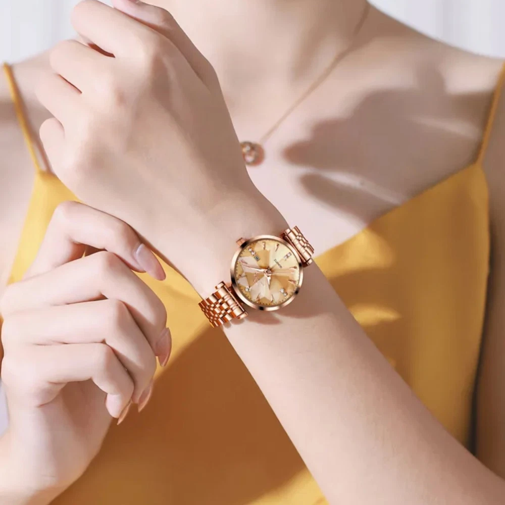 Discover the perfect blend of luxury and functionality with this waterproof rose gold women's watch. Made from durable stainless steel, it's shock-resistant and has a 3Bar water resistance depth, perfect for swimming. The round case and leather strap add a touch of style, making it ideal for any active and fashionable woman. Upgrade your style with the 1994 store.01
