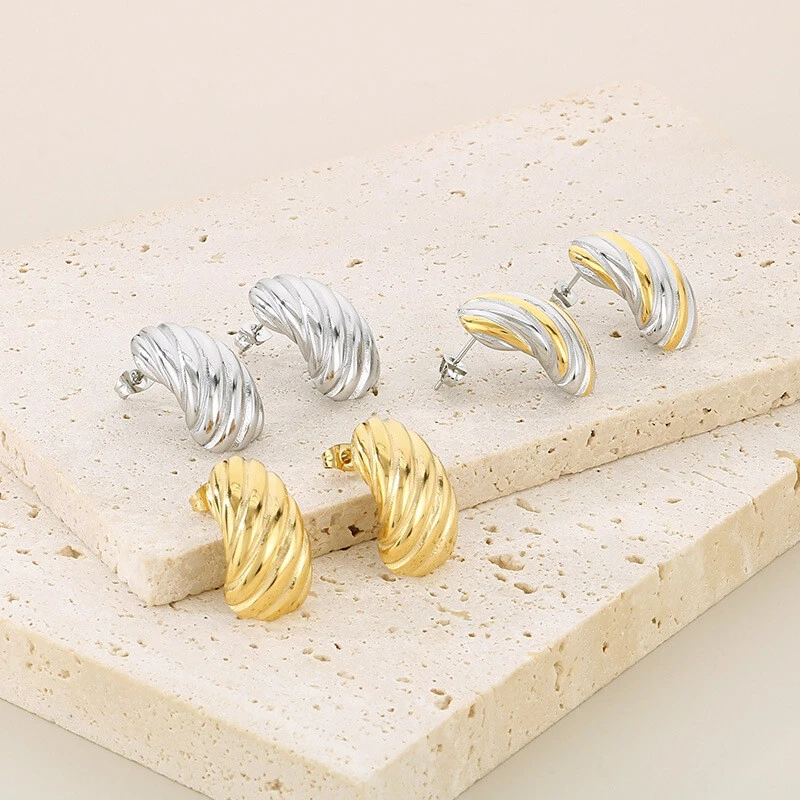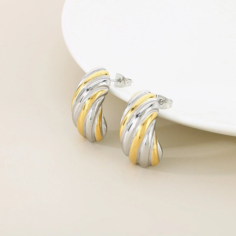 New titanium steel C-shaped earrings plated with 18k gold earrings for women