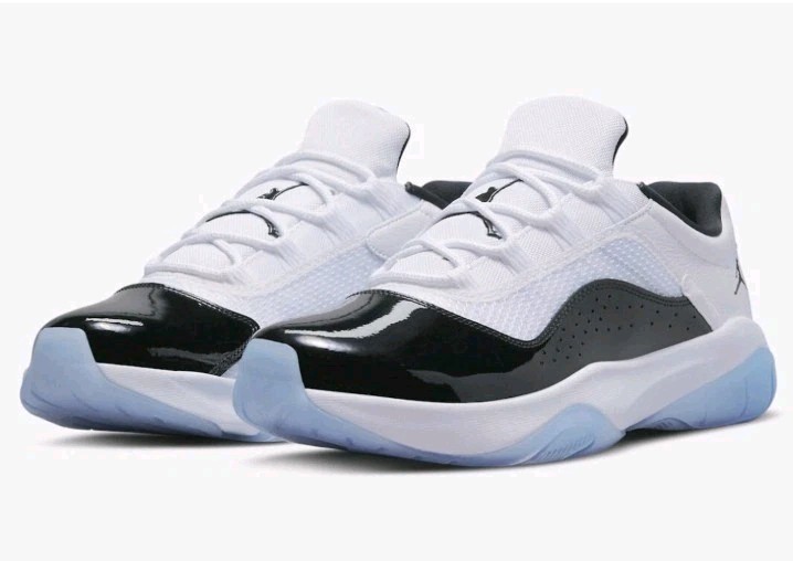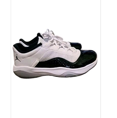 The product is a new without box Air Jordan 11 CMFT Low sneaker in men's size 9.5. It features a low top design with a black and white colorway inspired by the Concord model. Made with patent leather material, this athletic shoe belongs to the Air Jordan product line and is part of the style code DV2207-100. Perfect for sneaker enthusiasts looking for a classic and stylish addition to their collection.