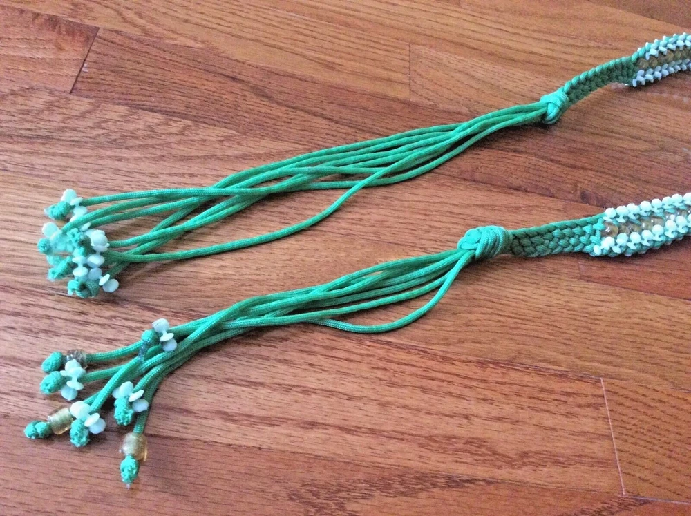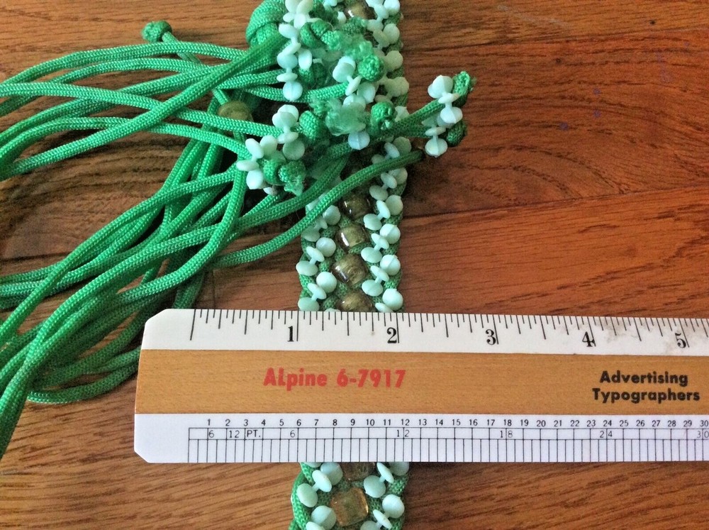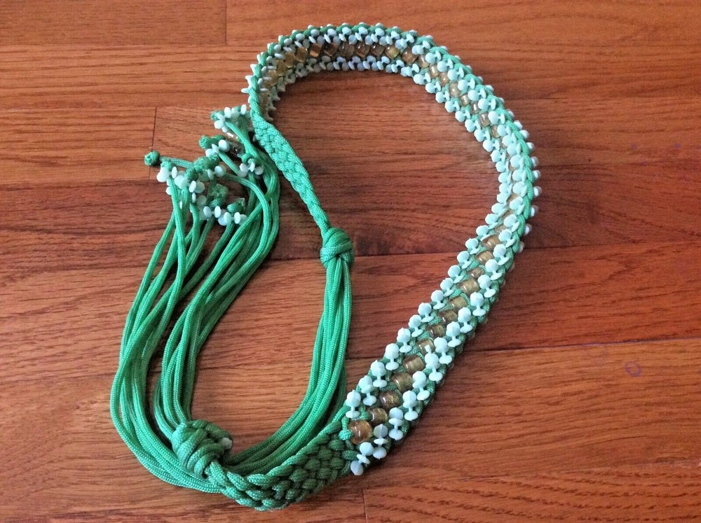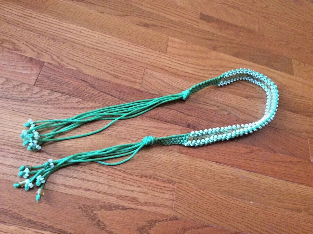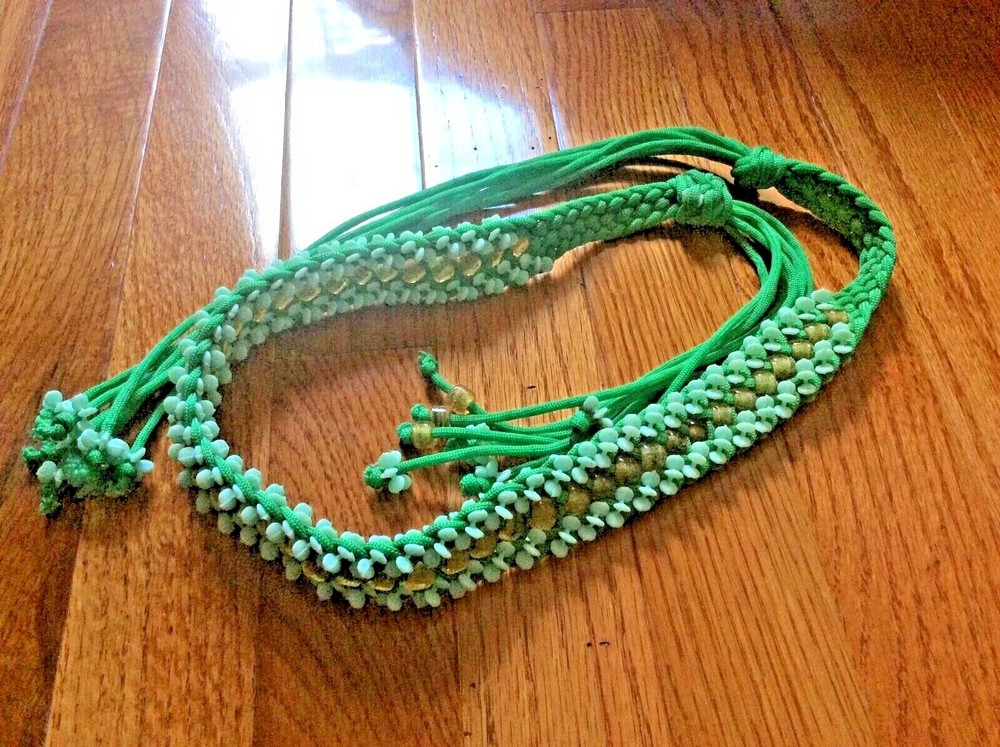 New years Y2K Nylon woven green dress belt beaded long 45” boho hip renaissance
