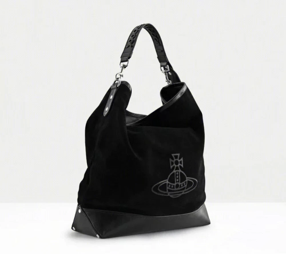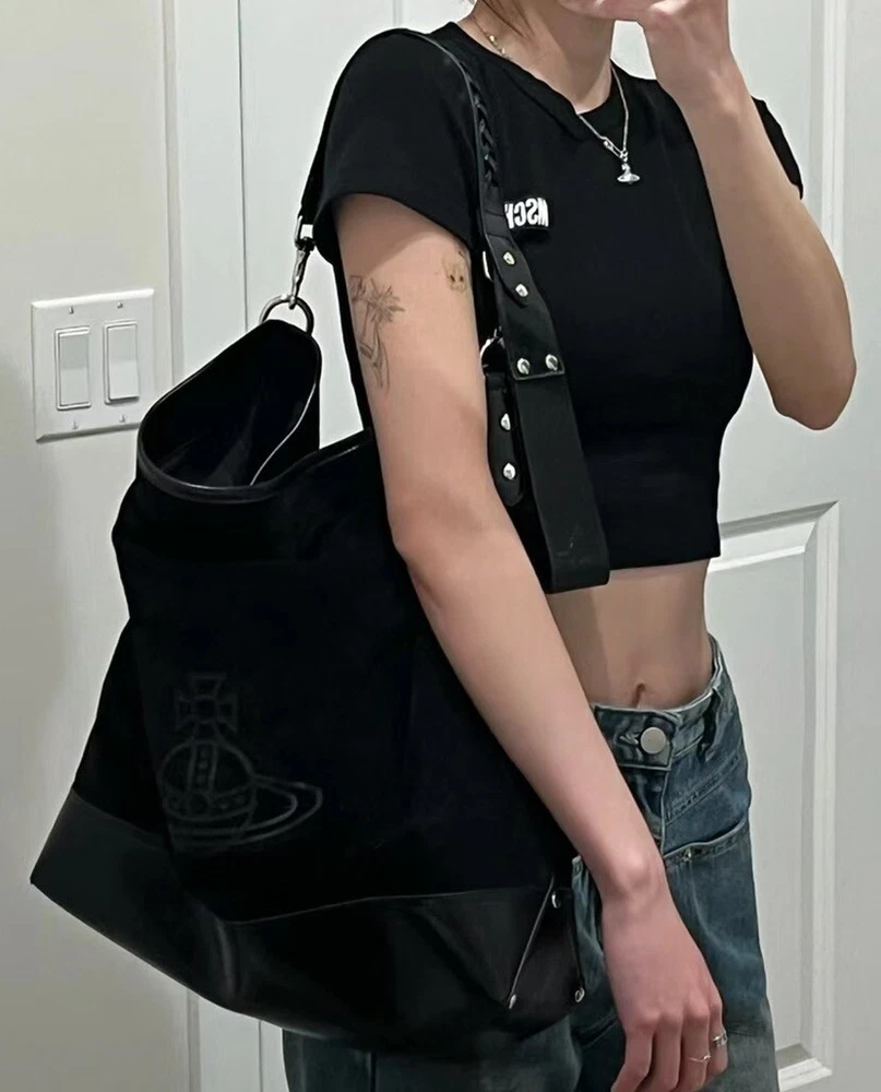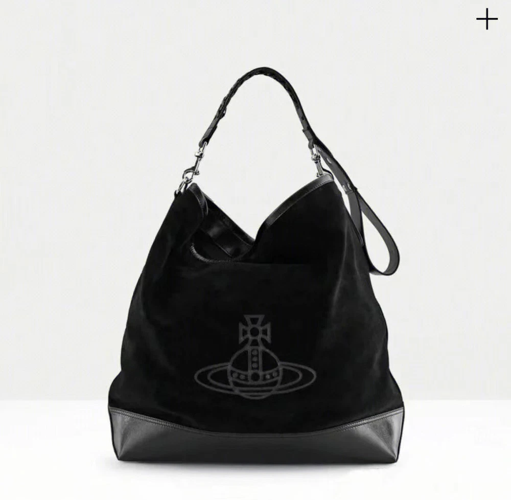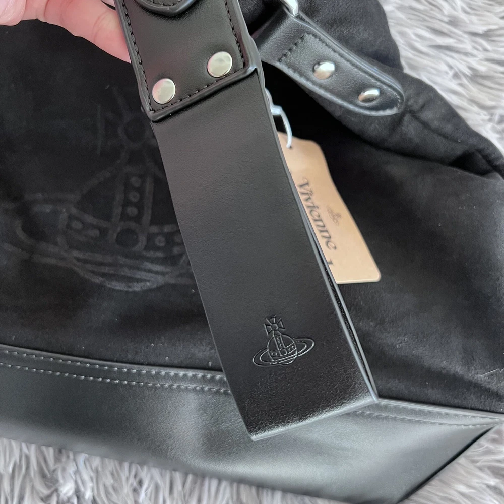 New~Vivienne Westwood Orb plaque Black Tote Hobo Bag