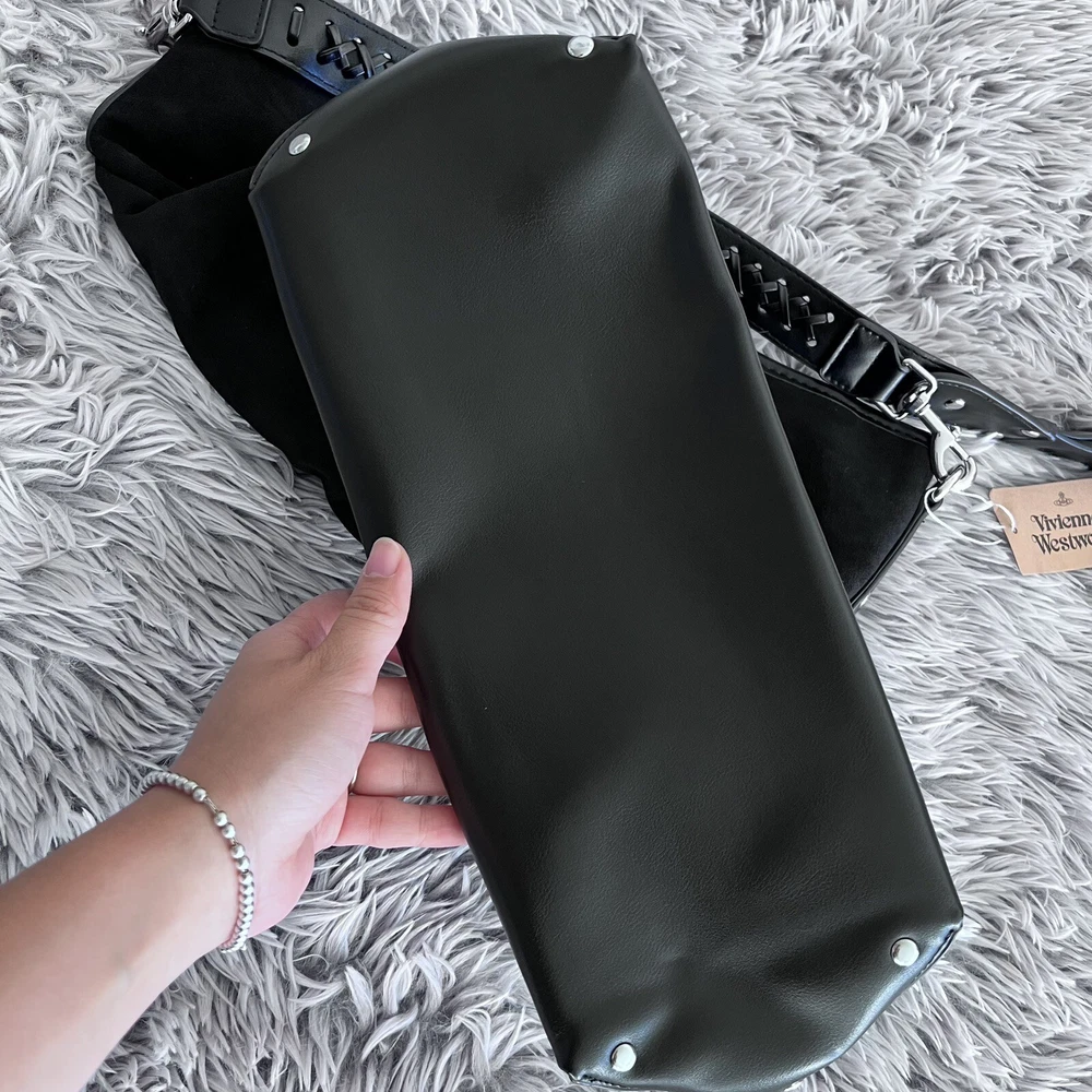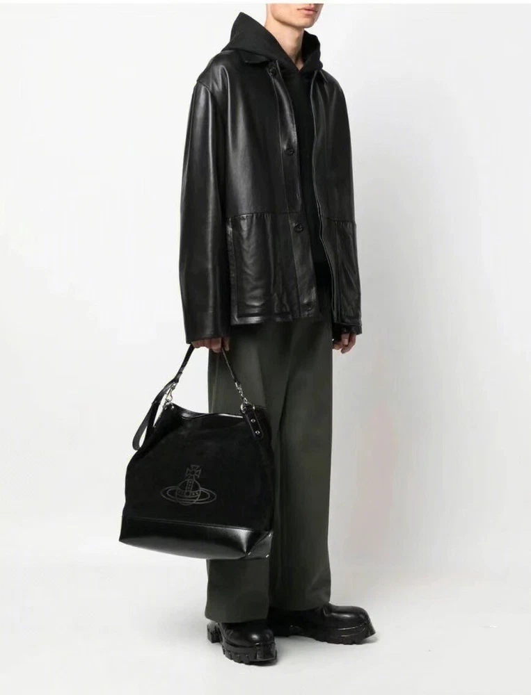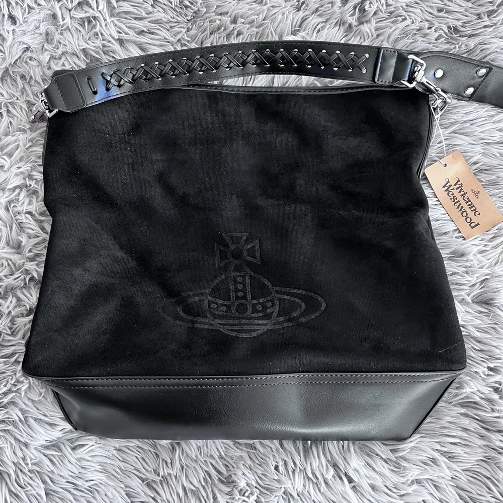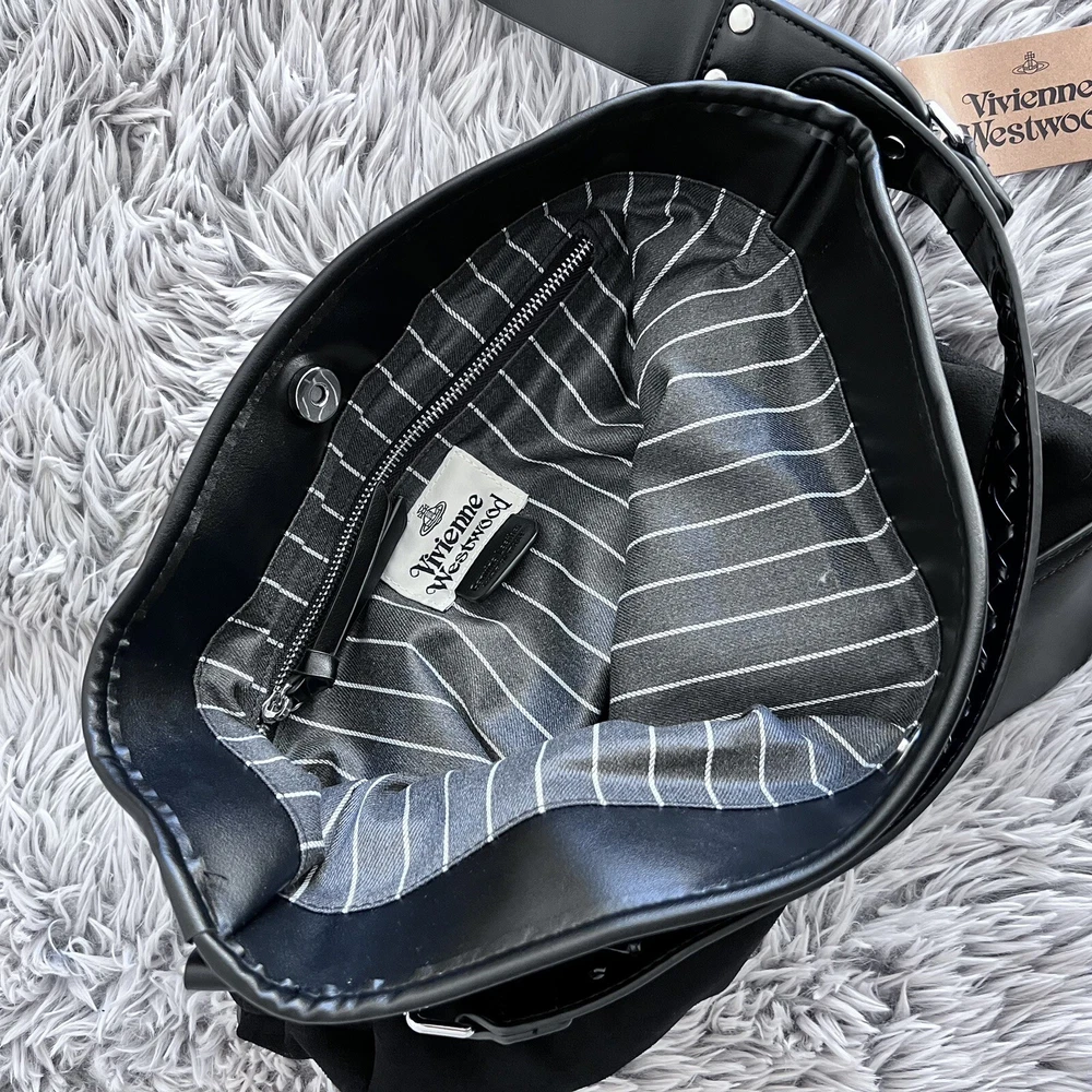 New~Vivienne Westwood Orb plaque Black Tote Hobo Bag