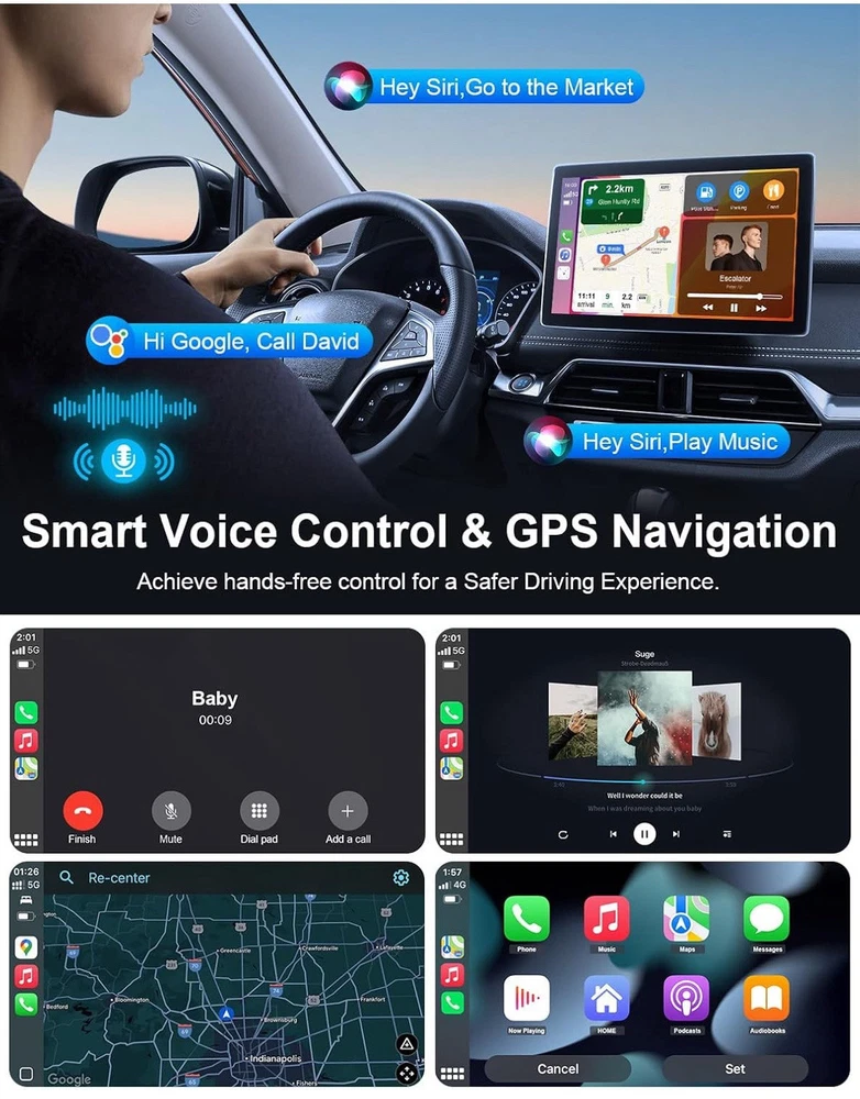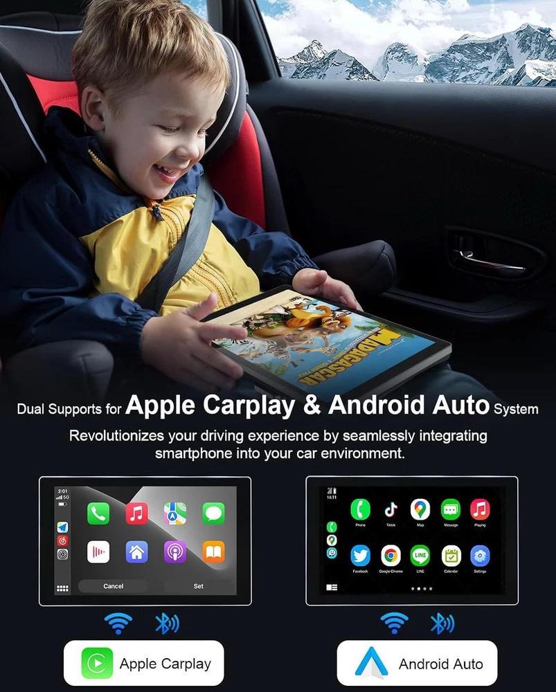 Brand New wireless Portable Carplay Screen for Car, 9" Wireless Carplay Android Auto Screen with 4K Dash Cam & 1080P Backup Camera, Car Play Stereo with Voice Control & GPS Navigation, Mirror Link, BT/FM/AUX Box still sealed.