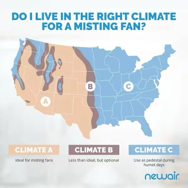 Suitable For: Outdoor Item Height: 18 in Type: Misting Brand: Newair Features: Oscillation