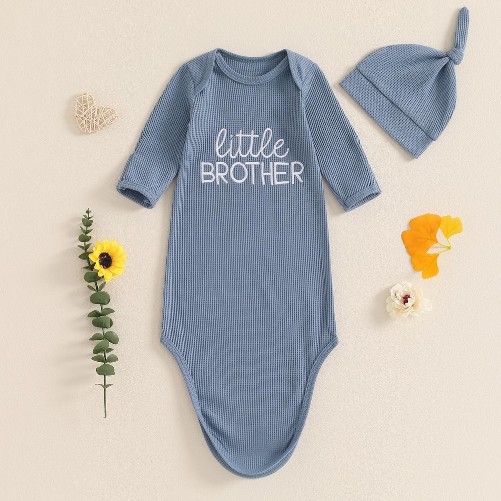 Newborn Boy Girl Coming Home Outfit Baby Infant Sleeper Gown Nightgown Outfits Cute Fall Winter Pajamas and Hat MATERIAL: 95% Cotton baby gown, soft and stretch, ultimate in cozy comfort, warm unisex newborn knotted gowns, gender neutral baby fall winter clothes, baby hospital outfit, neutral baby clothes DESIGN: Newborn knotted gown/open bottom sleeper and hat set, long sleeve infant gowns, little sister, little brother letter embroidered tie slpeeing bag, baby boy coming home outfits newborn baby nightgowns, infant sleeper baby sleep gown with mittens, cute unisex babies clothing, new born baby essentials must haves SIZE: Boutique baby nightgown, newborn jammies, newborn hospital outfit, baby gowns 0-3 months, 0-3 Months baby boy girl sleepers pajamas, preemie gowns for girls boys, 1 month, 2 month old baby stuff, easy to matching with mom, baby must haves for first time mom OCCASION: Going home outfit baby boy girl, Newborn coming home from hospital outfit, take home outfits, welcome home outfit, baby sister brother matching pjs, boy infant halloween sleepwear, baby boy girl pumpkin pajamas, photography props, An ideal gift for baby showers, Christmas gift etc PACKAGE:1xKnotted gown+1xHat, newborn little sister outfit, newborn little brother outfit, newborn baby boy girl gown and hat set newborn baby essentials must haves items, your babies will love it at first sight!