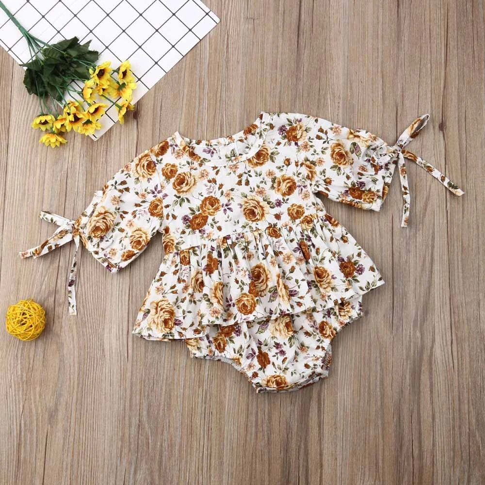 $ 13.2Newborn Baby Girls Clothes Jumpsuit Romper Floral Bodysuit Headband Outfits Set